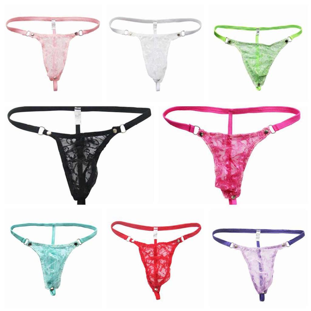 Мужские кружевные прозрачные стринги с мини-бантом и цветочным принтом, нижнее белье Sissy Pouch, нижнее белье