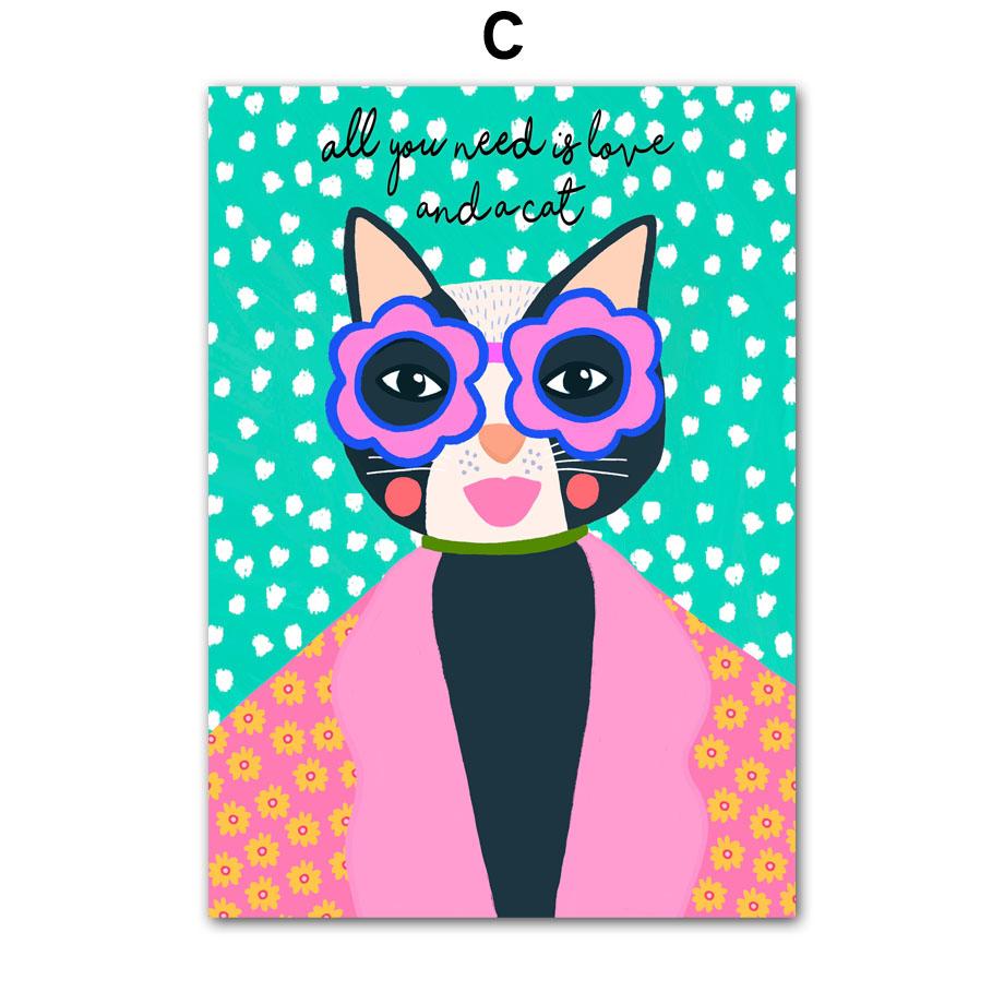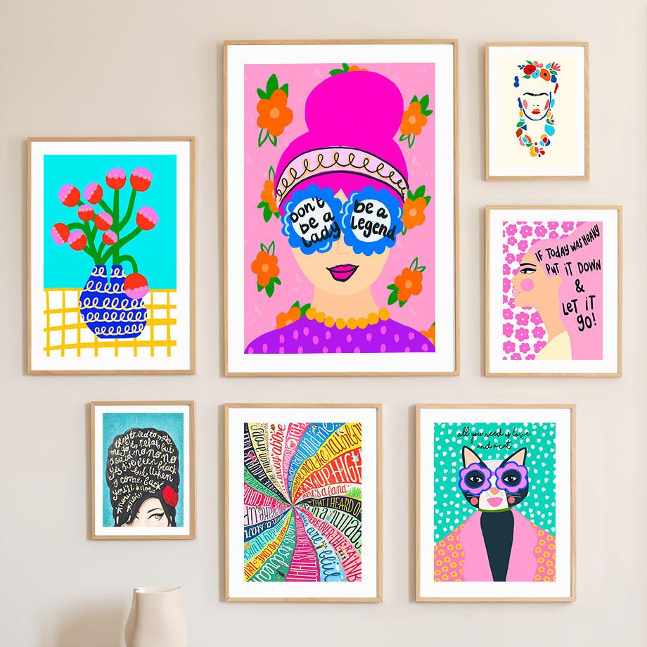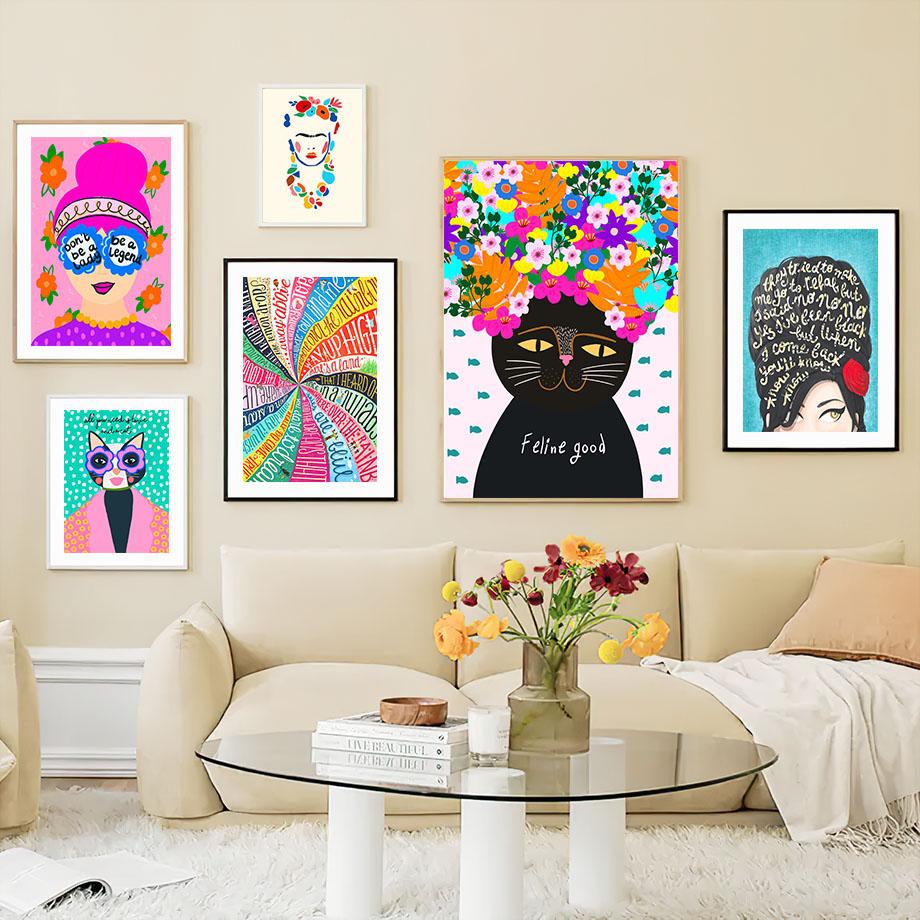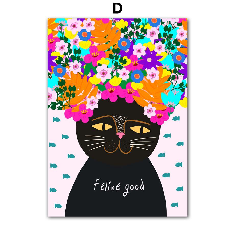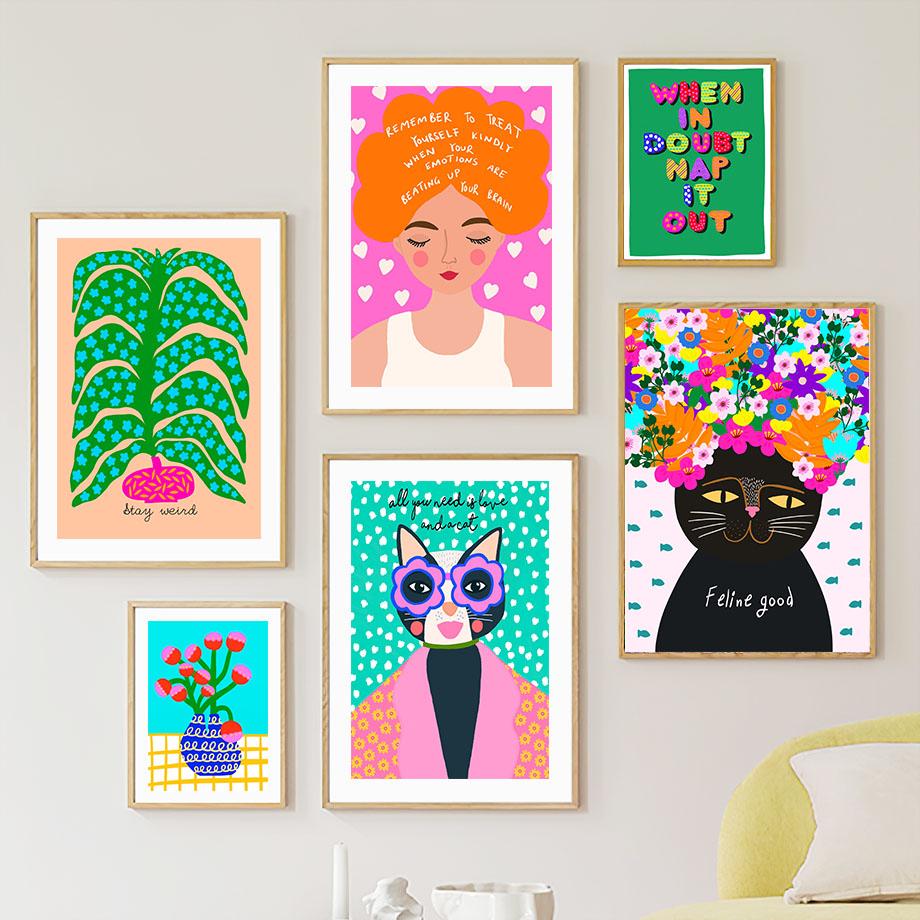 Цветочная девушка Miss Cat красочные поп-арт украшения гостиной плакаты и принты настенная живопись на холсте картины домашний декор