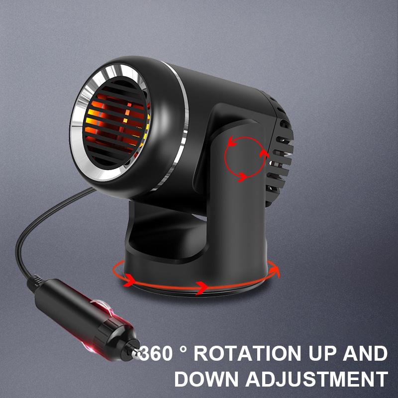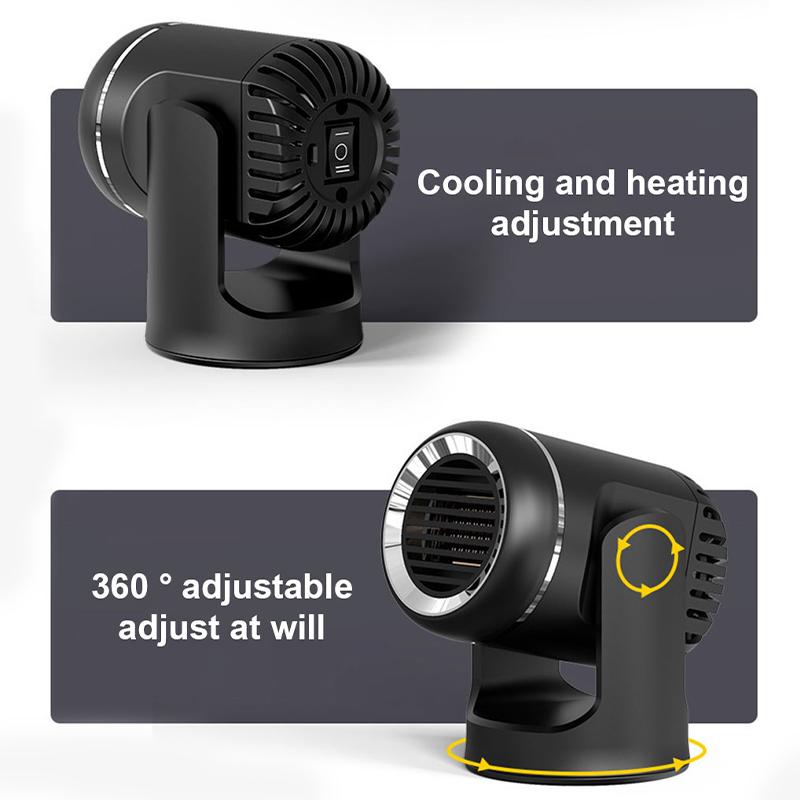 3. Два регулируемых режима ветра, позволяют чувствовать тепло зимой и прохладу летом. Вам просто нужно поменять переключатель, и тогда горячий или холодный воздух немедленно выдуется в соответствии с вашими потребностями. Это идеальный выбор в дополнение к существующим автомобильным обогревателям. Автомобильный обогреватель позволяет вам иметь четкое зрение во время вождения, обеспечивая безопасность вождения и наслаждаясь зимним теплом. Его также можно использовать в качестве вентилятора для охлаждения автомобиля летом.