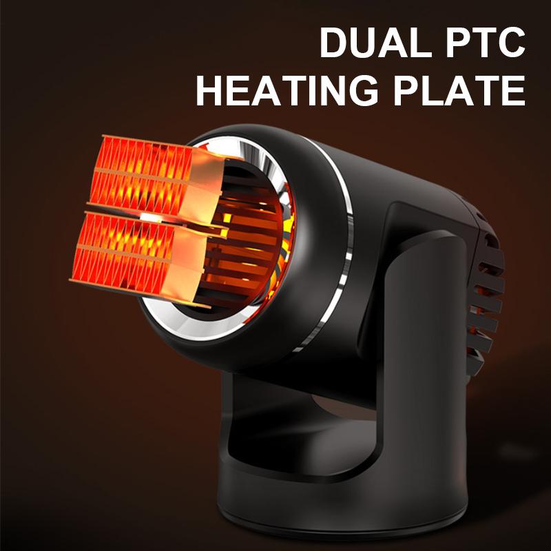 2. Автомобильный обогреватель имеет конструкцию основания, вращающуюся на 360 градусов, которой легко управлять, позволяя теплому воздуху дуть под любым углом, который вы хотите. Основание демпфера можно разместить на нескользящем коврике или просто закрепить двусторонним клейким ковриком.