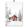 Настенная картина на холсте, Рождественская елка, красный дом, белка, олень, украшение для гостиной, постеры и принты, настенные картины для дома