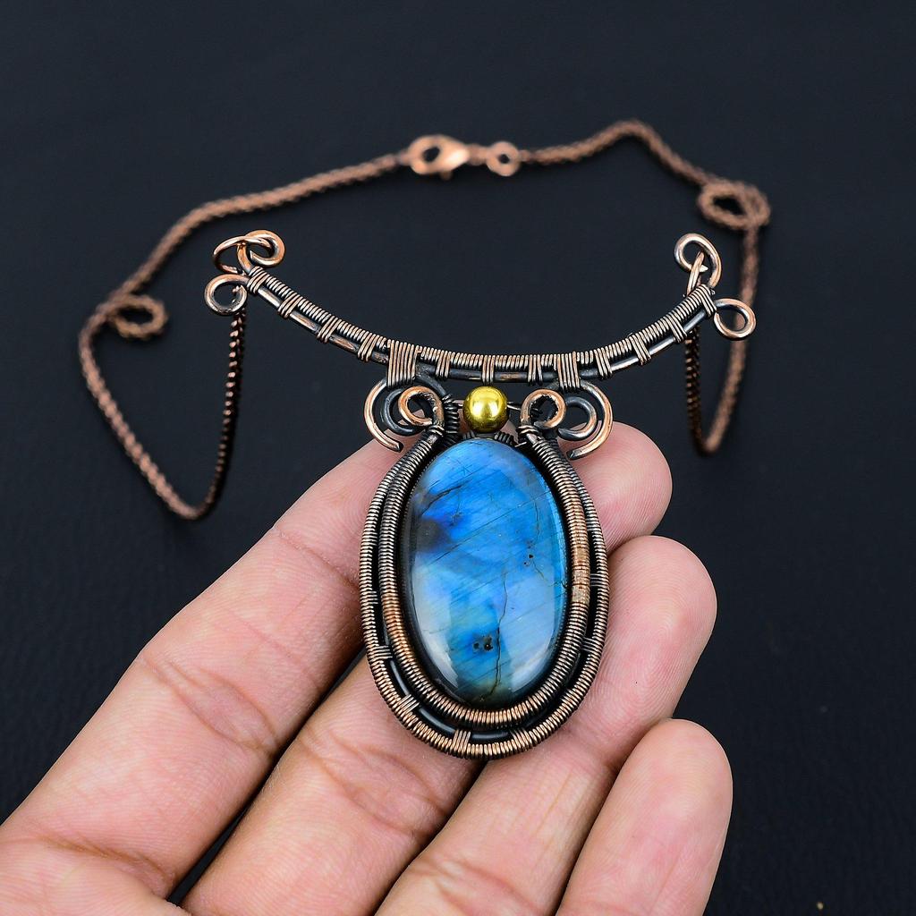Роскошный лабрадорит, драгоценный камень, чистая медная проволока, завернутый в ювелирное ожерелье ручной работы, подарок — купить товар онлайн с бесплатной доставкой по всему миру!
