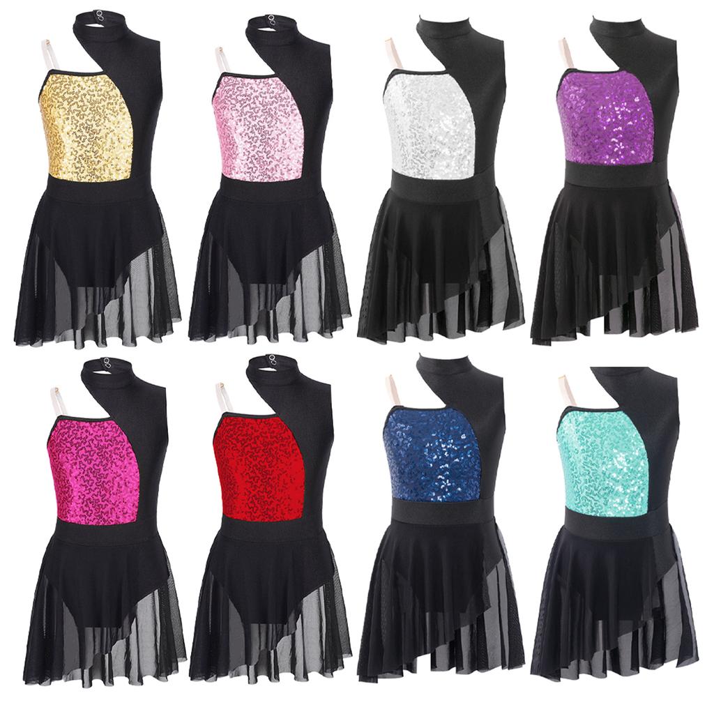 Детское балетное гимнастическое трико для девочек, платье без рукавов с блестящими пайетками, лирическое танцевальное платье для выступления на сцене — купить товар онлайн с бесплатной доставкой по всему миру!