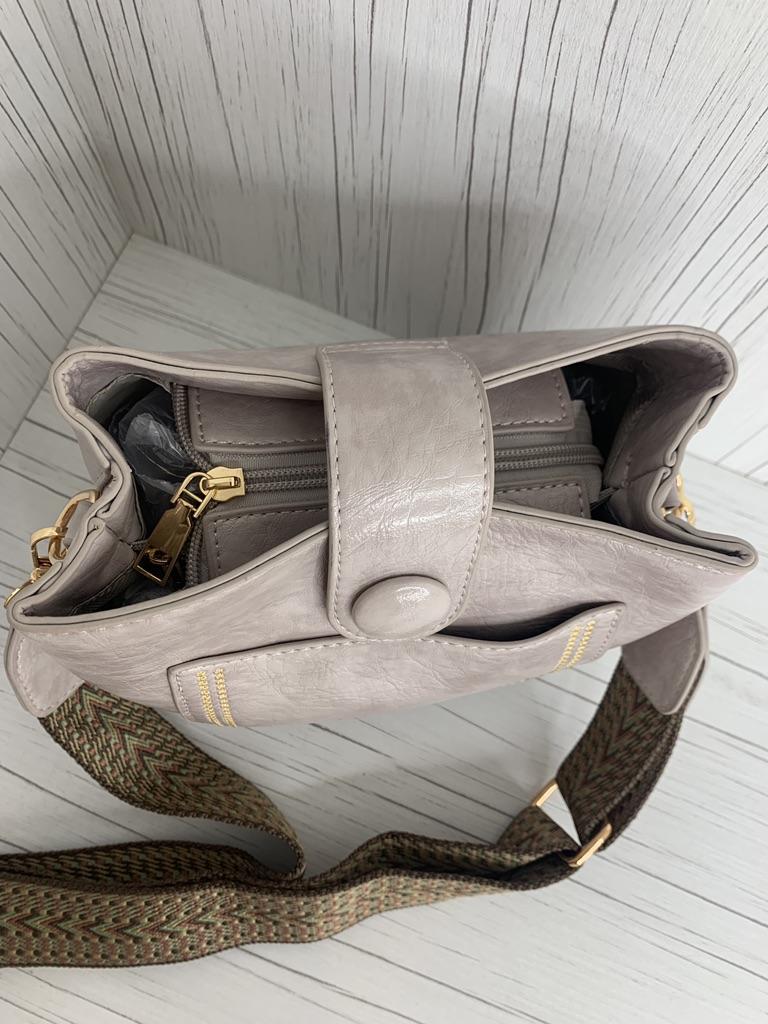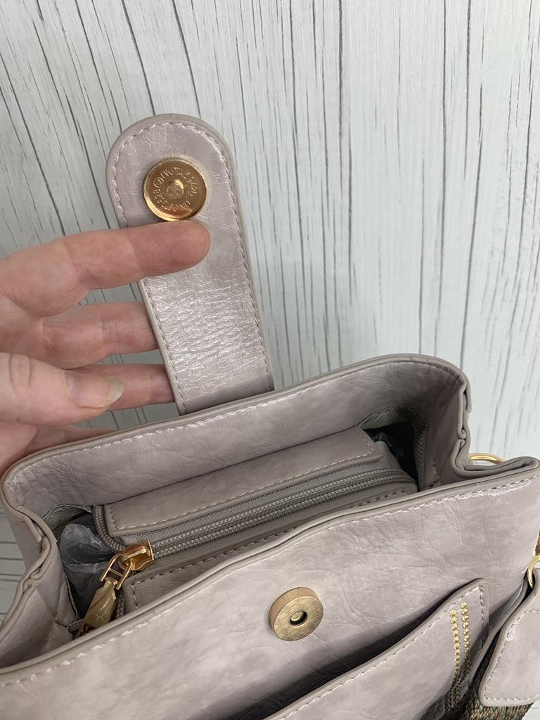 Сумка хорошая, качественного исполнения. Магнит хорошо держит, молния внутри как обычно тонкая. Сумка имеет только один карман в внутри по середине. Как косметичка. Больше карманов нет. И два основных. Для женских мелочей подойдет. Ремень коротковат. Носить можно только через плечо. На искосок уже не поносишь. Нужно ремень длиньше. Полная длина ремня с зажимами 109 см. При перевозке повредили немного сумку. Но я оставила. Не критично. Но лучше замок хлястик прятать во внутрь сумки при транспортировке.