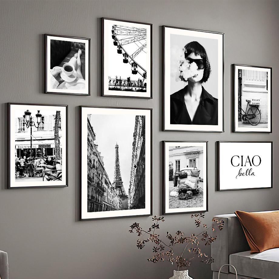 Парижское полотенце колесо обозрения кафе модная девушка настенная живопись холст черно-белая гостиная плакат печать домашний декор настенная картина