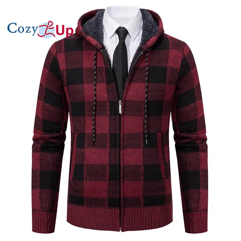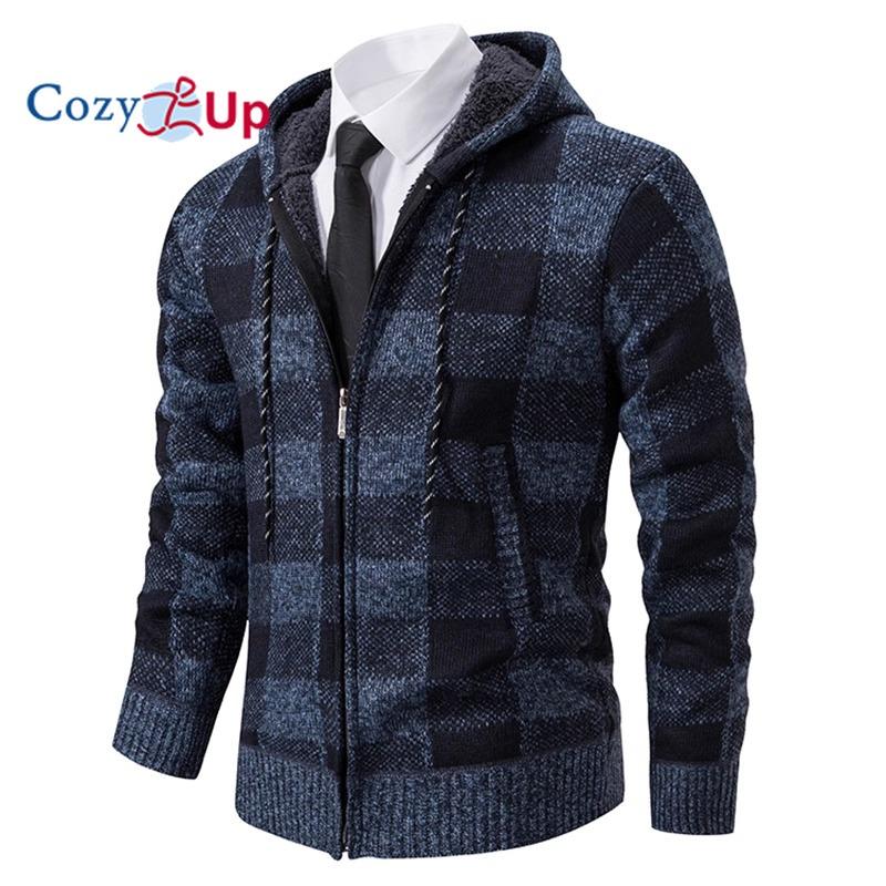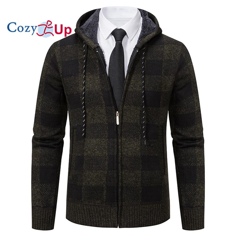 Cozy Up Мужской флисовый кардиган на молнии с капюшоном, свитер, зимняя теплая куртка на подкладке из шерпы, пальто, толстовки с карманами