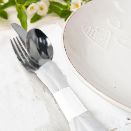 Эти ленты для салфеток не только помогают держать салфетку обернутой вокруг столовых приборов, но и способствуют поддержанию чистоты на вашем мероприятии.