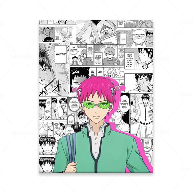 Рамка из цельного дерева Saiki Kusuo No Sai Nan Аниме Манга Вышивка Домашний Декор Холст Плакат Печать Украшения Художественные Настенные Панно Картина Для Гостиной