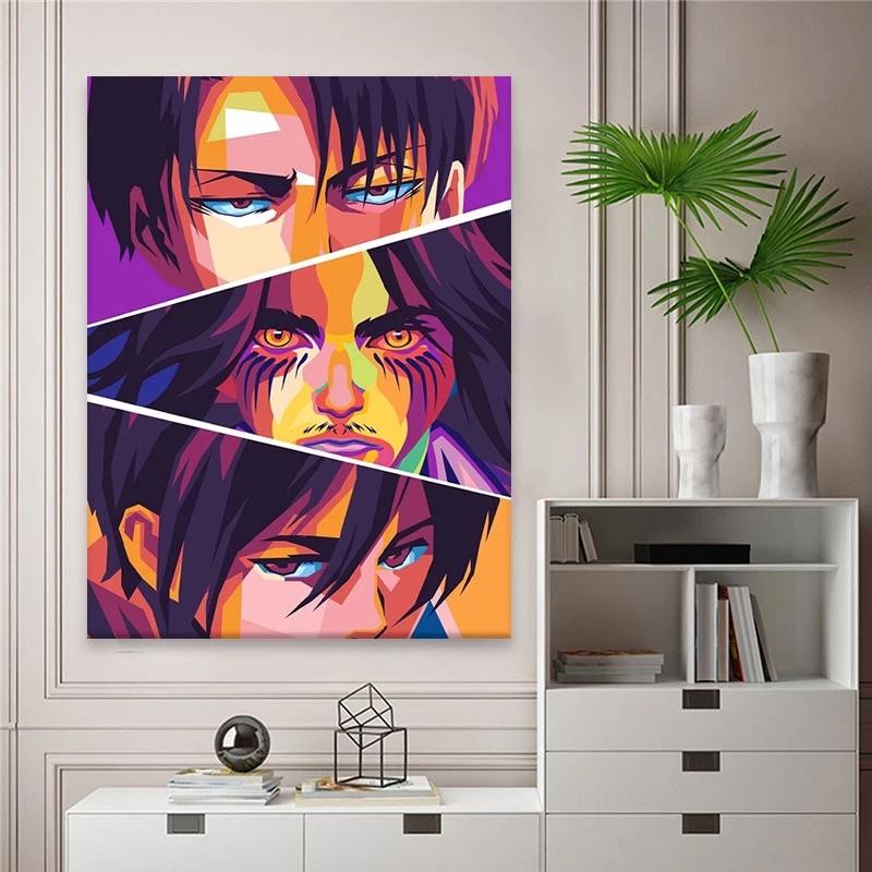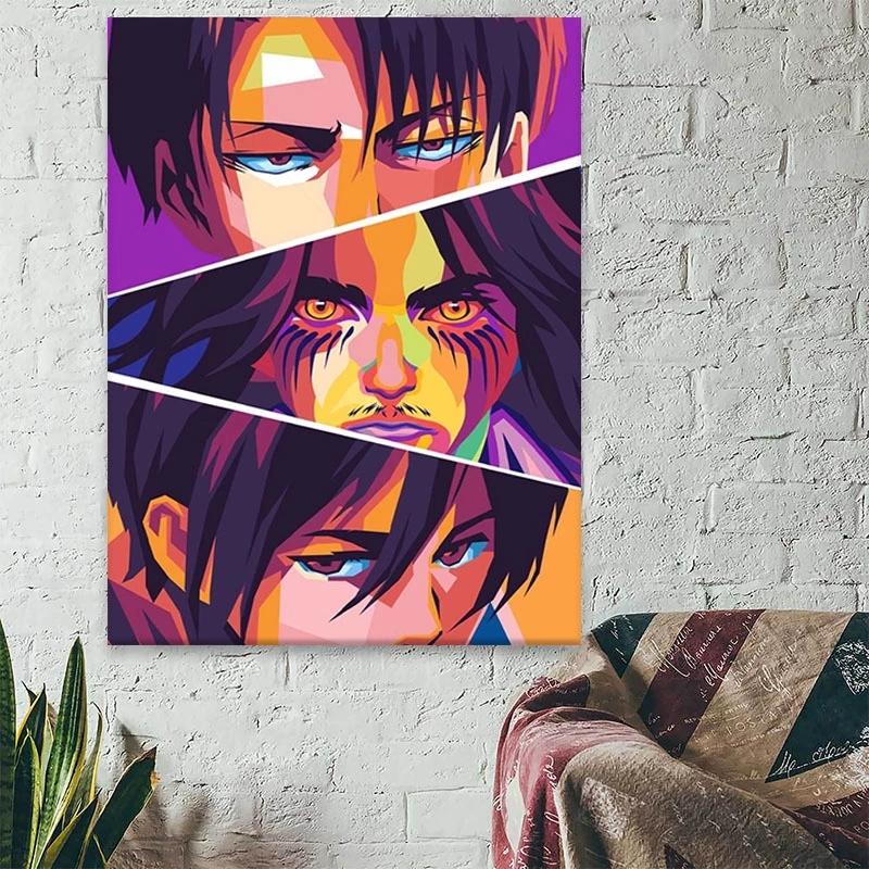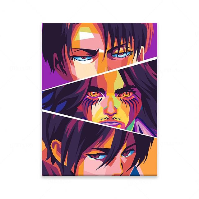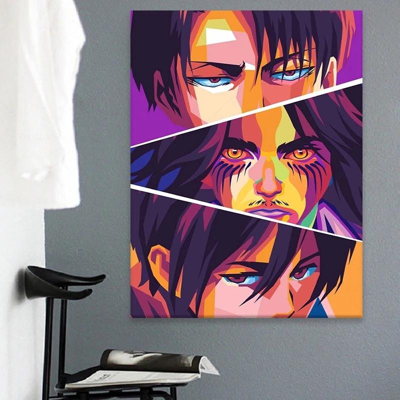 Рамка из цельного дерева, настенная живопись «Атака на Титанов», холст, картина, HD печатная картина японского аниме, украшение для дома, постер для гостиной, в модульной рамке