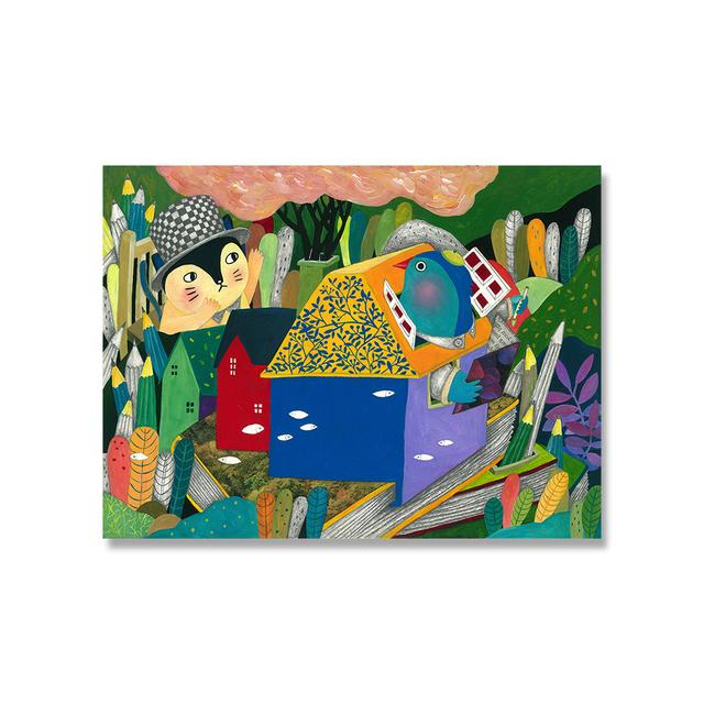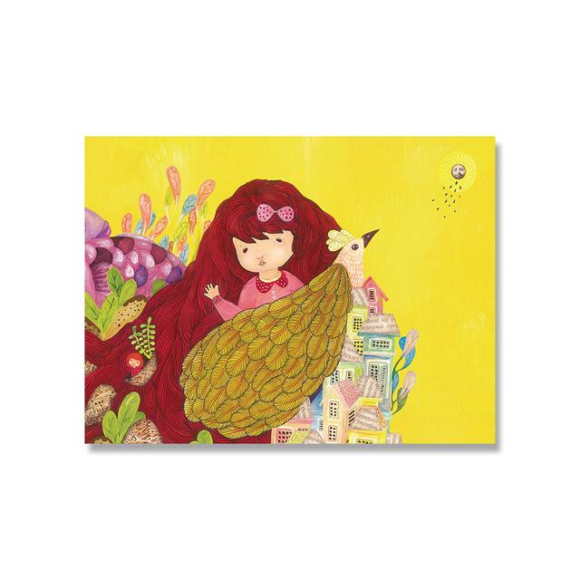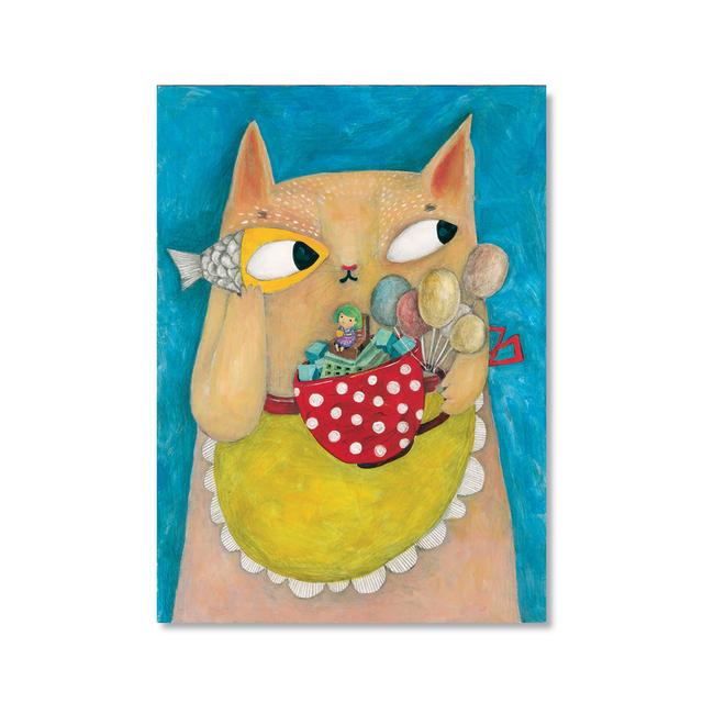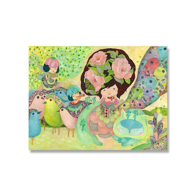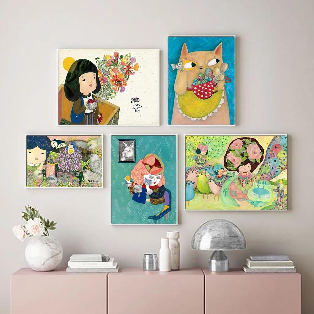 Рамка из цельного дерева, милая маленькая девочка, холст, картина, абстрактные постеры с мультяшными животными, принт, настенная художественная картина, подарок на день рождения для девочек, домашний декор