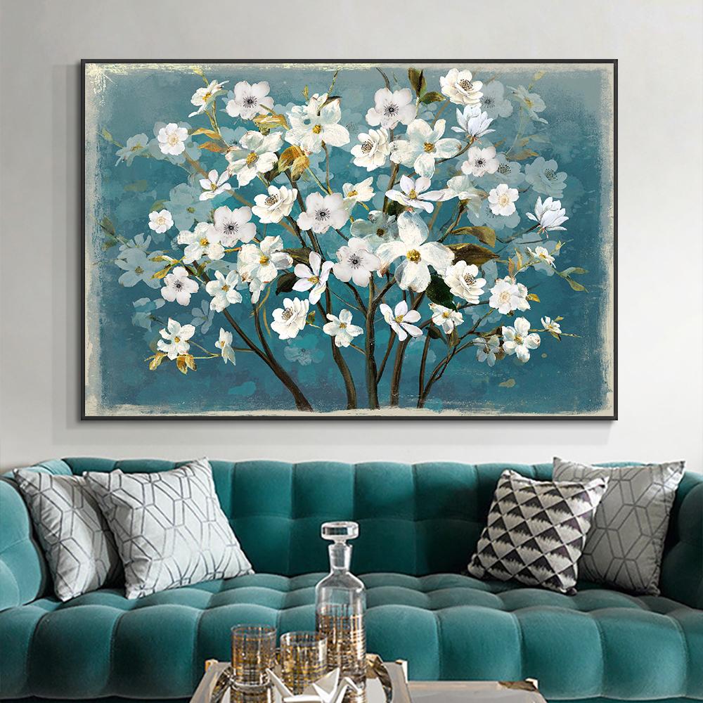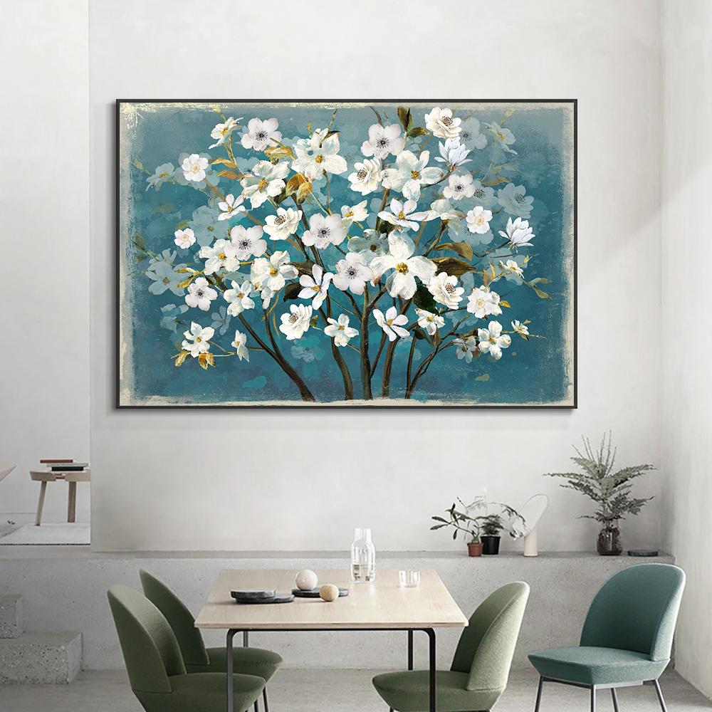 Рамка из цельного дерева, абстрактный белый цветок, картина маслом на холсте, скандинавские пейзажи, постеры и принты, настенные художественные фотографии, домашний декор для гостиной