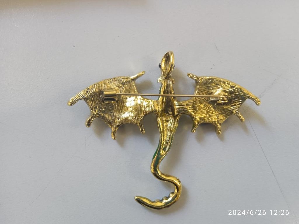 Эта забавная винтажная брошь в форме летающего дракона, украшенная сверкающими стразами, станет идеальным дополнением к вашей коллекции модных аксессуаров.