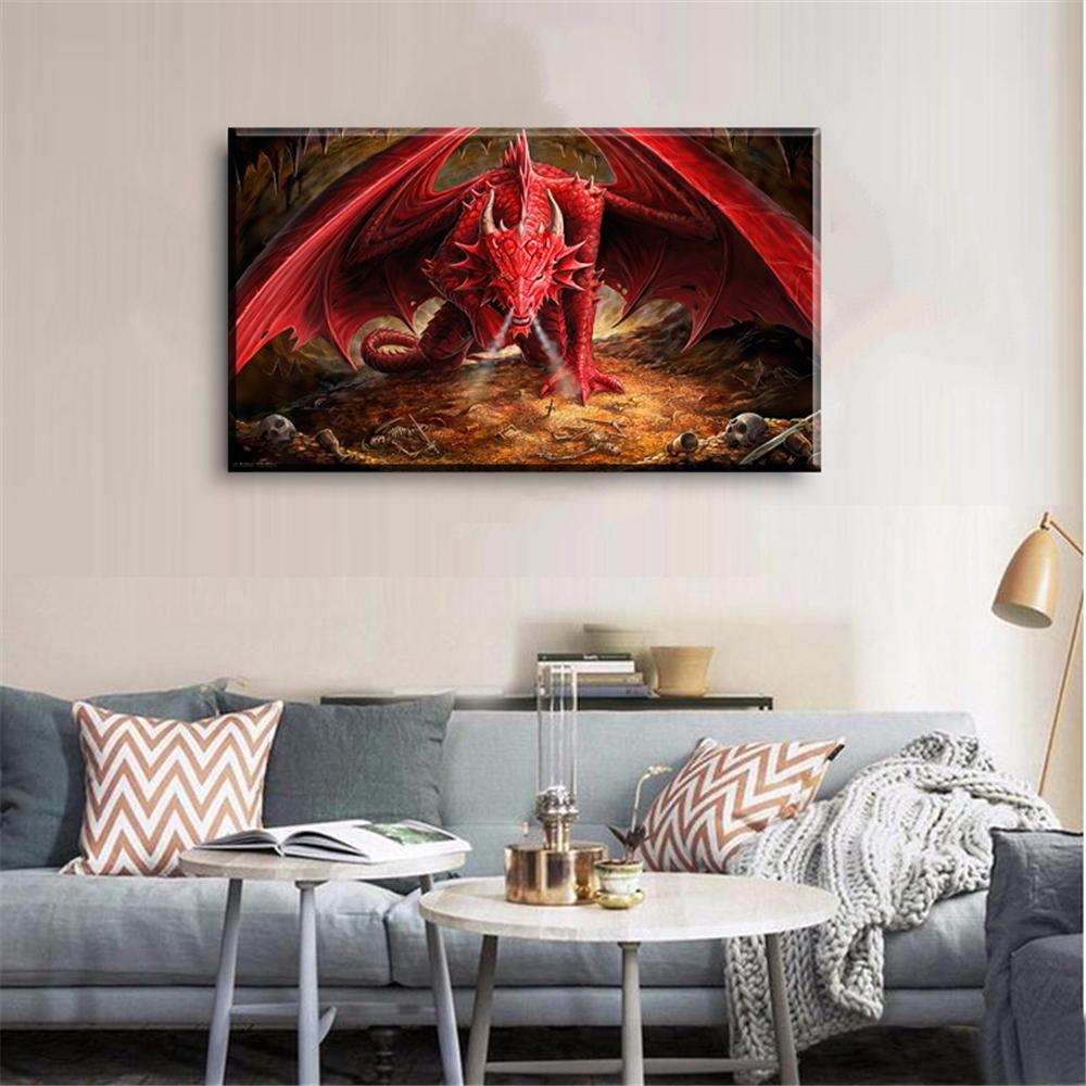 Рамка из массива дерева, домашний декор, модульная картина на холсте, золотой, красный дракон, повсюду, игровая живопись, пейзаж, художественная комната, постер, домашняя настенная картина на холсте