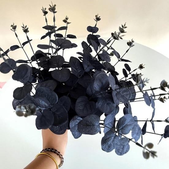 Представляем наше искусственное растение, идеальное дополнение к вашему декору на Хэллоуин! Эти черные искусственные цветы универсальны и могут быть выставлены в вазе или использованы в качестве украшения на камине, полке или столе. Листья эвкалипта, изготовленные из шелковой ткани, выглядят невероятно реалистично и требуют минимального ухода.
