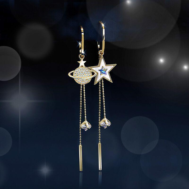 Длинные висячие серьги с кисточками для женщин, массивные серьги-подвески с кристаллами планеты, ювелирные изделия для свадебной вечеринки