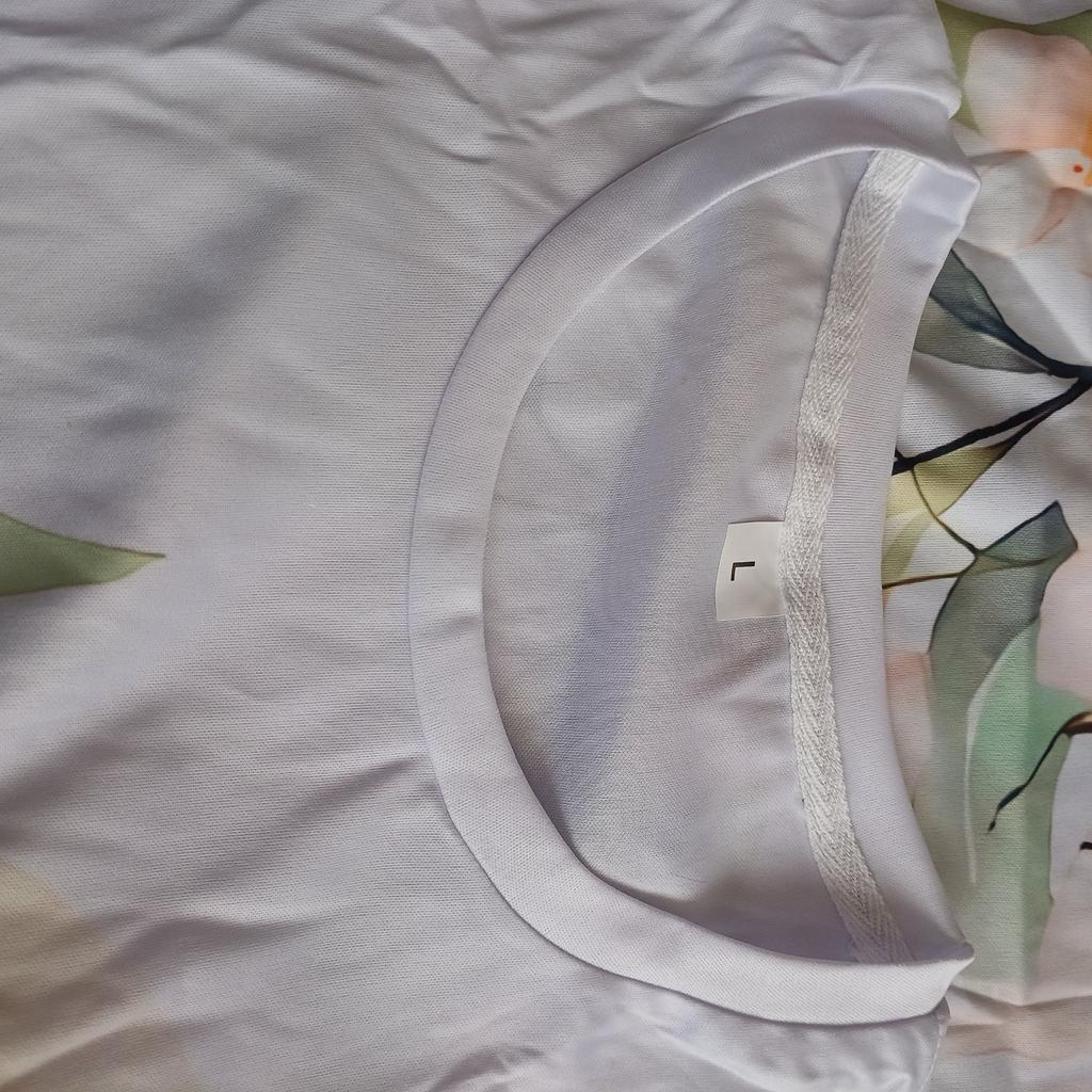 Футболка оказалась очень большая и длинная. Искусственная скользкая нить. Может это кому-то и понравится. Это был на подарок. Свой размер на объем 116; этот размер 5XL слишком велик. На рекламе футболка выглядит красиво, но на самом деле это не как 3D, а накатанный рисунок. Если бы я наяву видела, то никогда бы не купила. А вернуть не представляется возможным. Это возврат вещи в другую страну. видимо не нужно вестись на рекламу. И покупать вещи нужно из х/б.