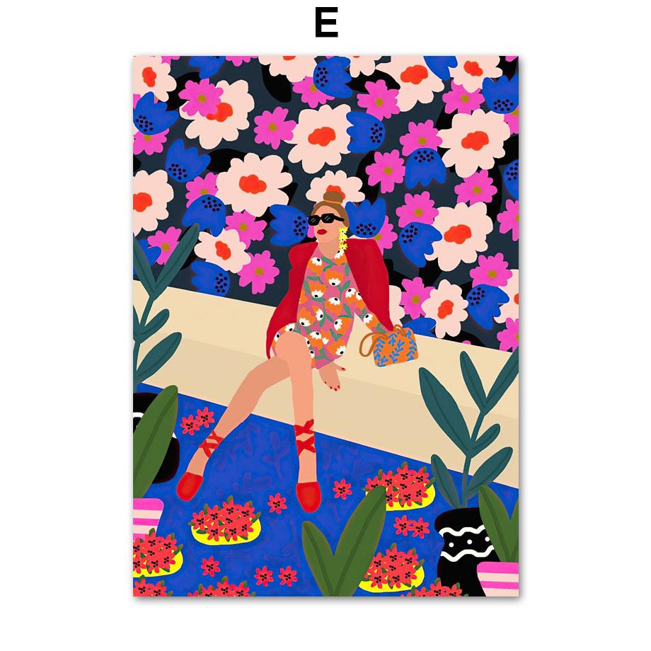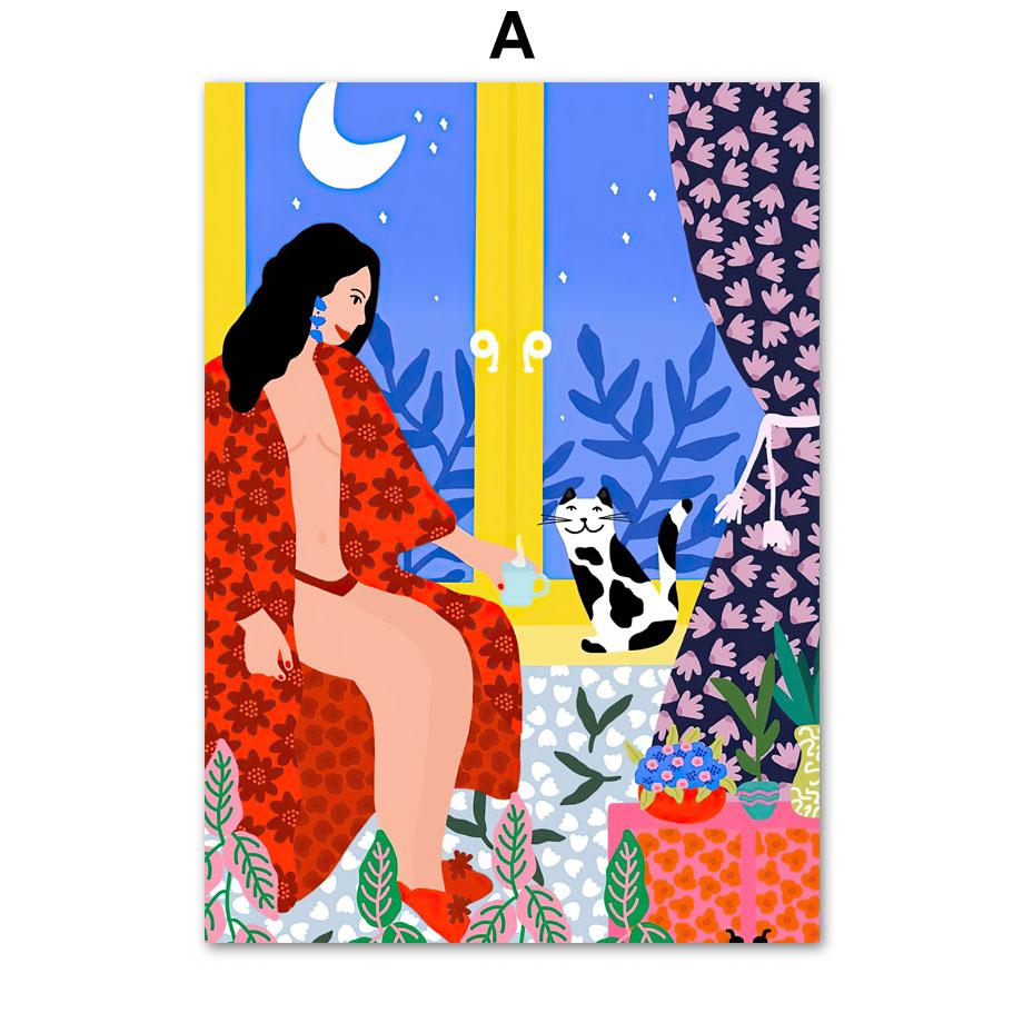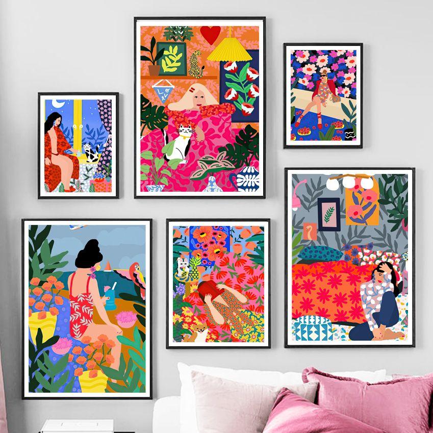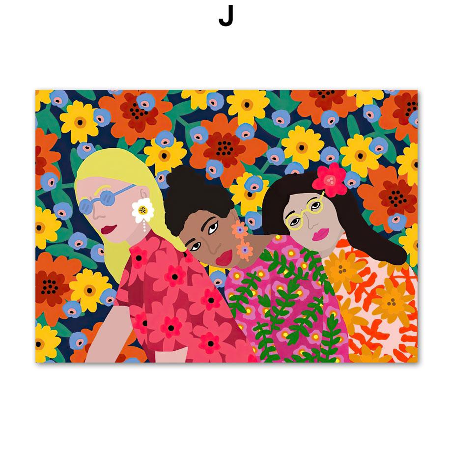 Скандинавский Ретро постер в стиле бохо, абстрактные красочные девушки, цветочные листья, животные, настенная живопись, холст, декоративная картина, фотографии для гостиной