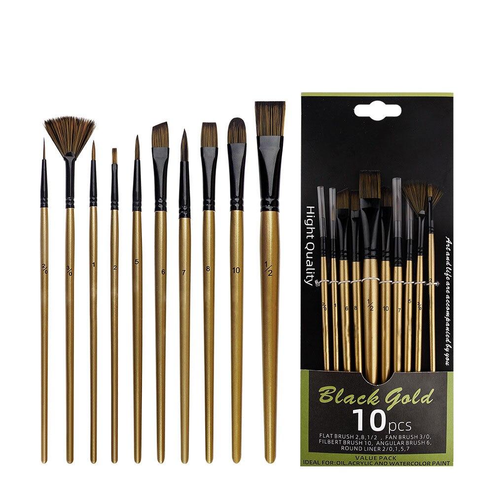 Акварельные кисти, 10 шт., многофункциональный набор, коричневая короткая деревянная нейлоновая шерсть, студенческая кисть для рисования гуашью, масляная кисть, художественный инструмент