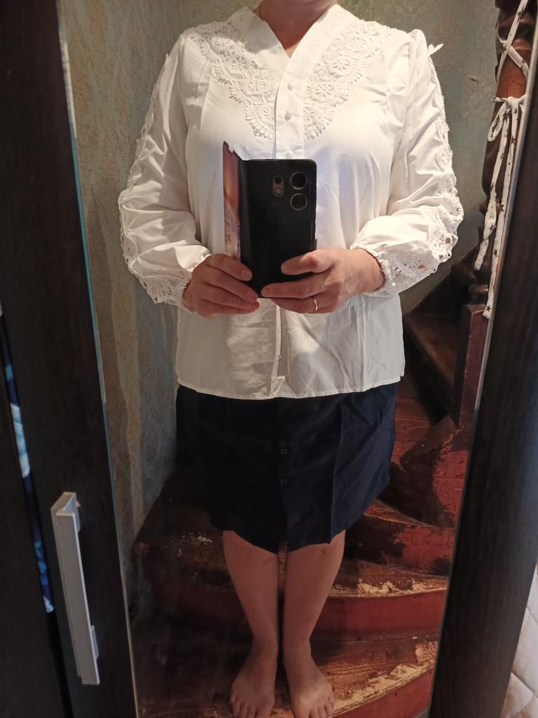 На фото красивее, на самом деле материал синтетика, на рукаве кружевная вставка, сам рукав из той же синтетики... Не рекомендую...