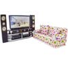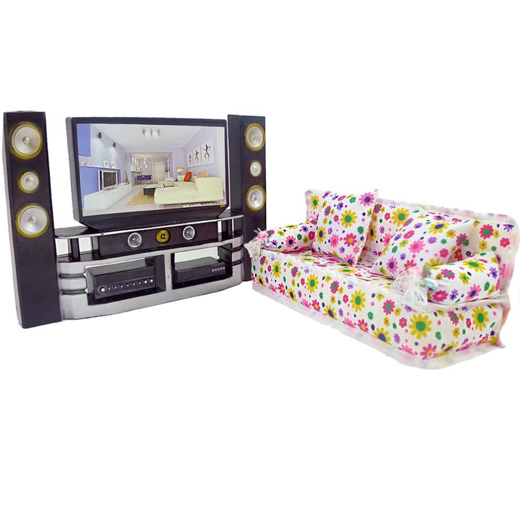 Мини-кукольный домик, мебель для семьи, спальни, HI-FI, ТВ-шкаф, цветочный диван + 2 подушки для кукол Барби, аксессуары(НЕТ КУКЛ)