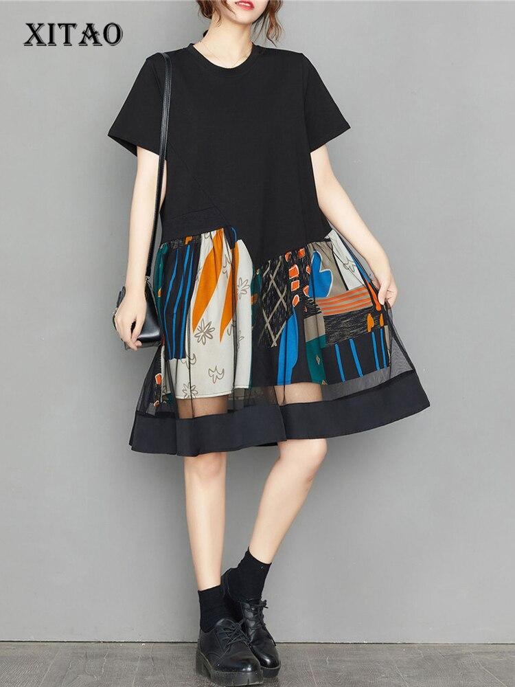 Xitao Лоскутное марлевое повседневное женское платье с индивидуальным принтом DMJ1457