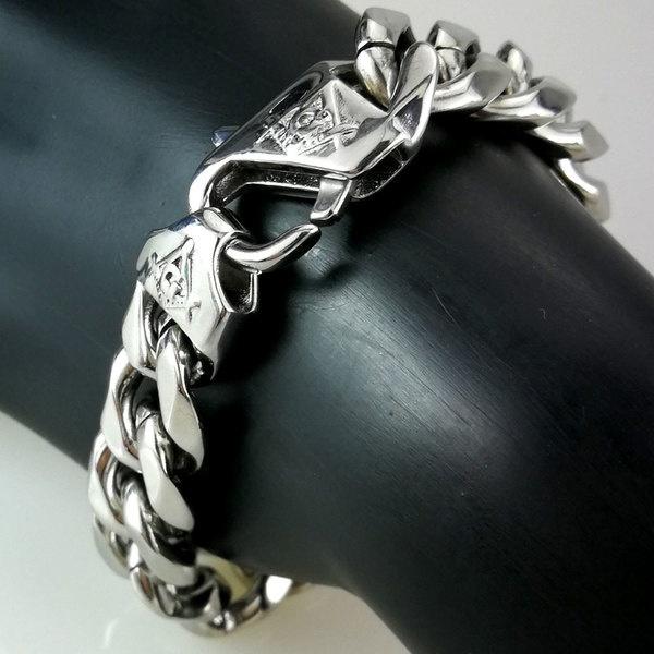 Цвет серебра браслета нержавеющей стали цепи каменщика масонского масонства для людей и женщин
