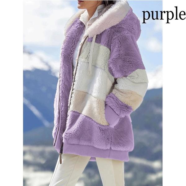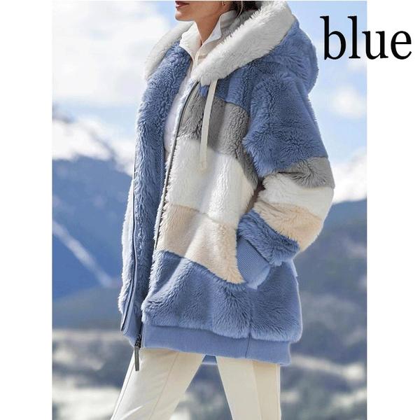 Женская осенне-зимняя теплая свободная многоцветная плюшевая куртка с капюшоном
