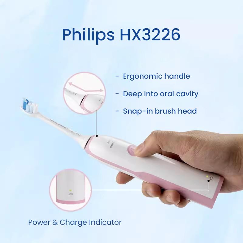Philips HX3226 Электрическая зубная щетка для взрослых, перезаряжаемая звуковая вибрационная зубная щетка для пар (со встроенной насадкой * 2) Интеллектуальный отбеливающий уход за деснами