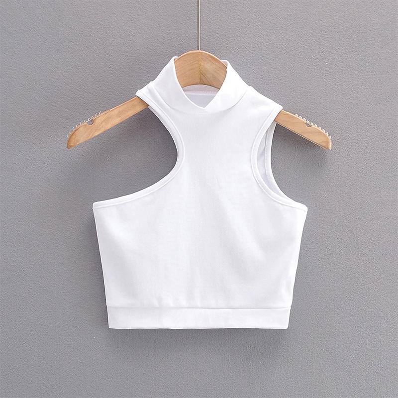 Женская укороченная майка с высоким воротом и вырезами Активная асимметричная укороченная майка