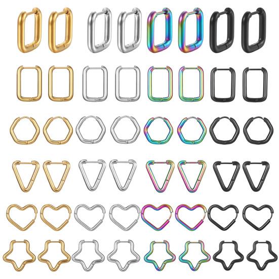 1 пара серег с геометрическим рисунком из титановой стали, разной формы, маленькие полированные женские пятиконечные звезды