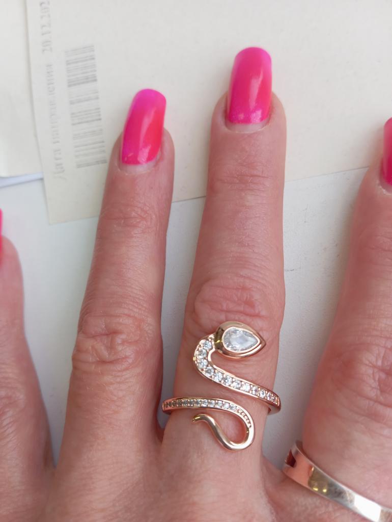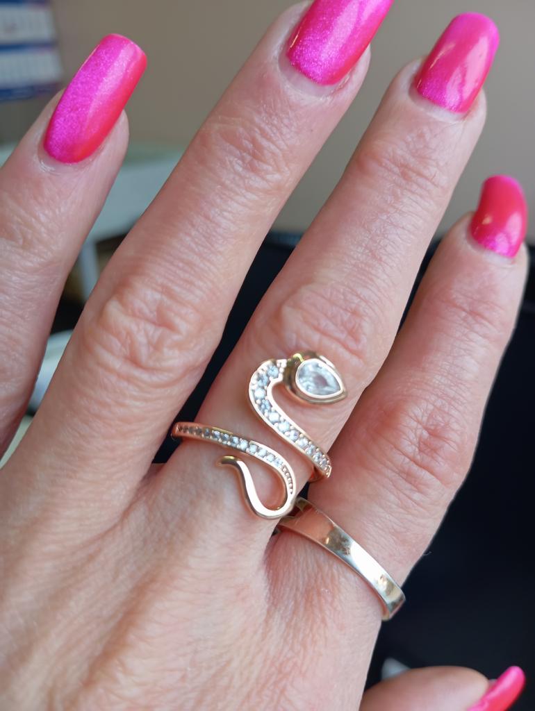 Кольцо обалденное, я вообще восторге смотрися шикарно всем рекомендую купите не пожалеете. Его можно на любой палец одеть он растягивается долго шло оно стоило этого, подождать большое спасибо за такую красоту
