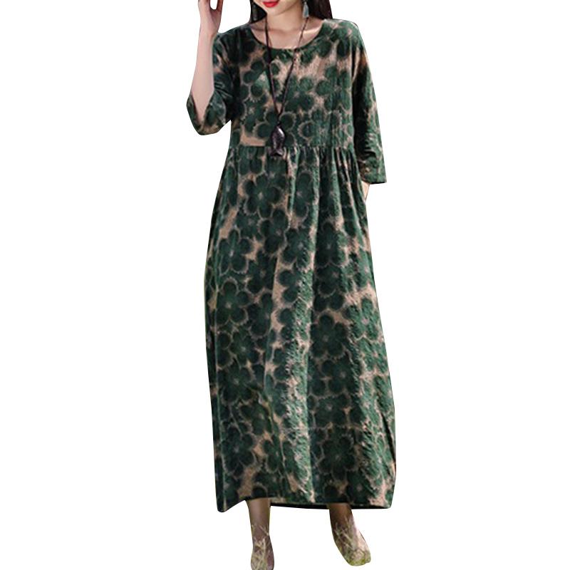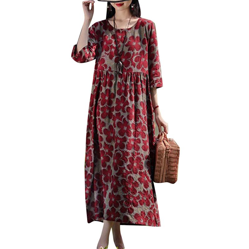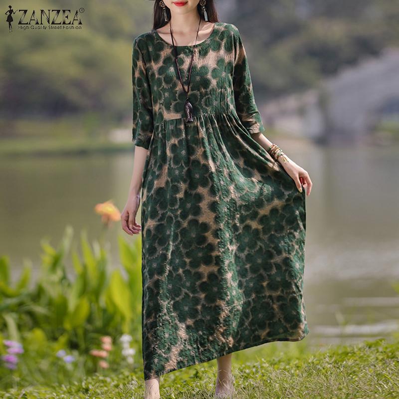 ZANZEA Женское летнее повседневное длинное платье с рукавами 3/4 и круглым вырезом с принтом
