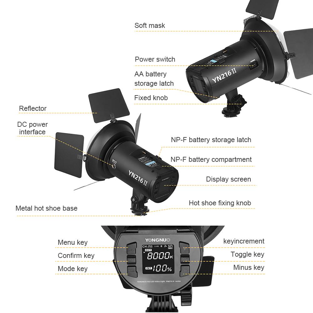 YONGNUO YN216II Двухцветный светодиодный светильник для видеосъемки, 24 Вт, мощный светильник для фотосъемки, 2700–9900 К, с регулируемой яркостью