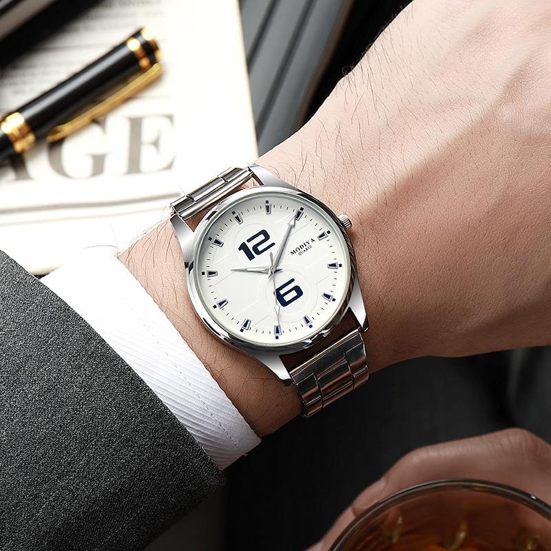 Мужские модные кварцевые часы с голубым стеклом и ремешком из нержавеющей стали