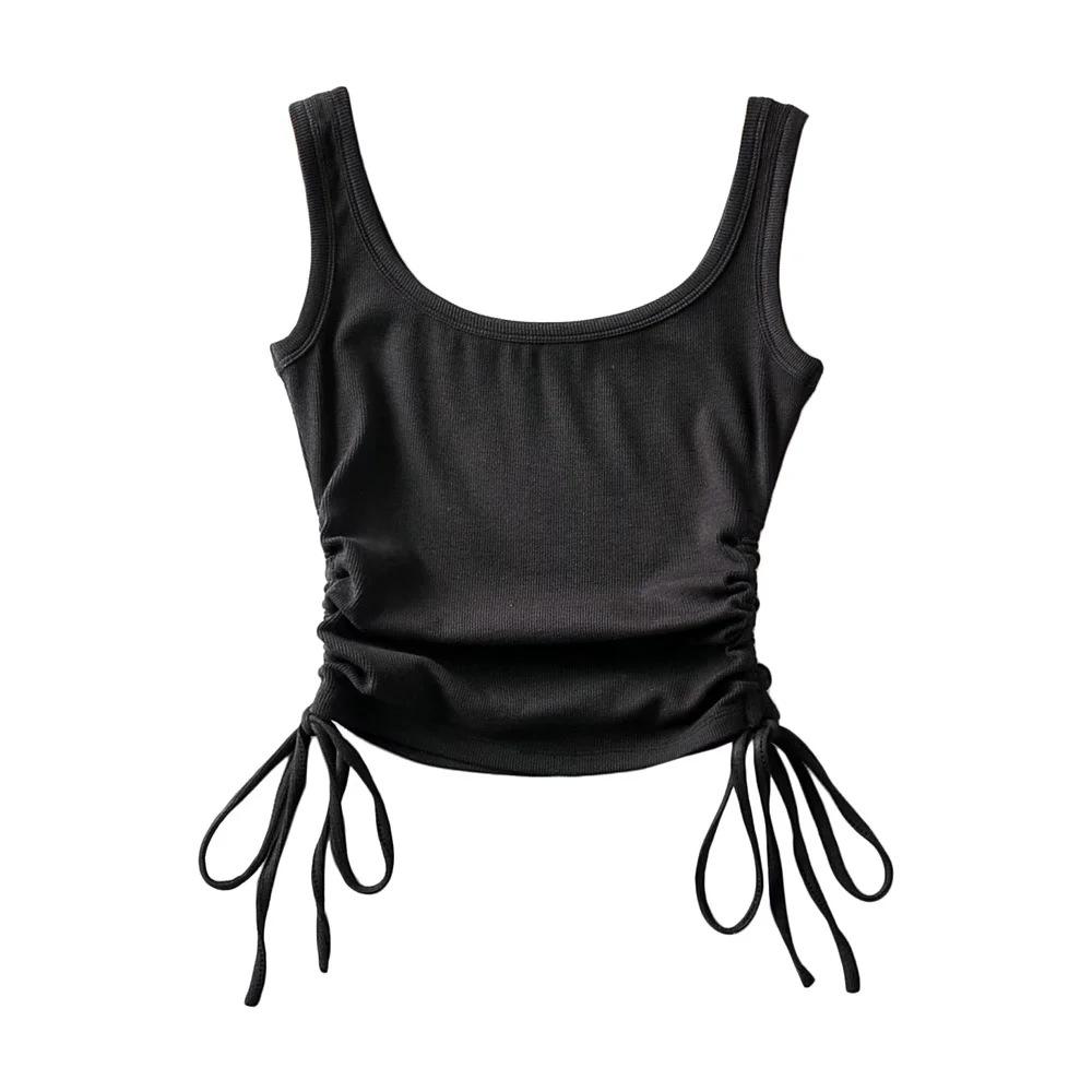 Новое поступление, повседневный однотонный жилет с двумя боковыми шнурками для девочек, сексуальные майки и майки с гофрировкой