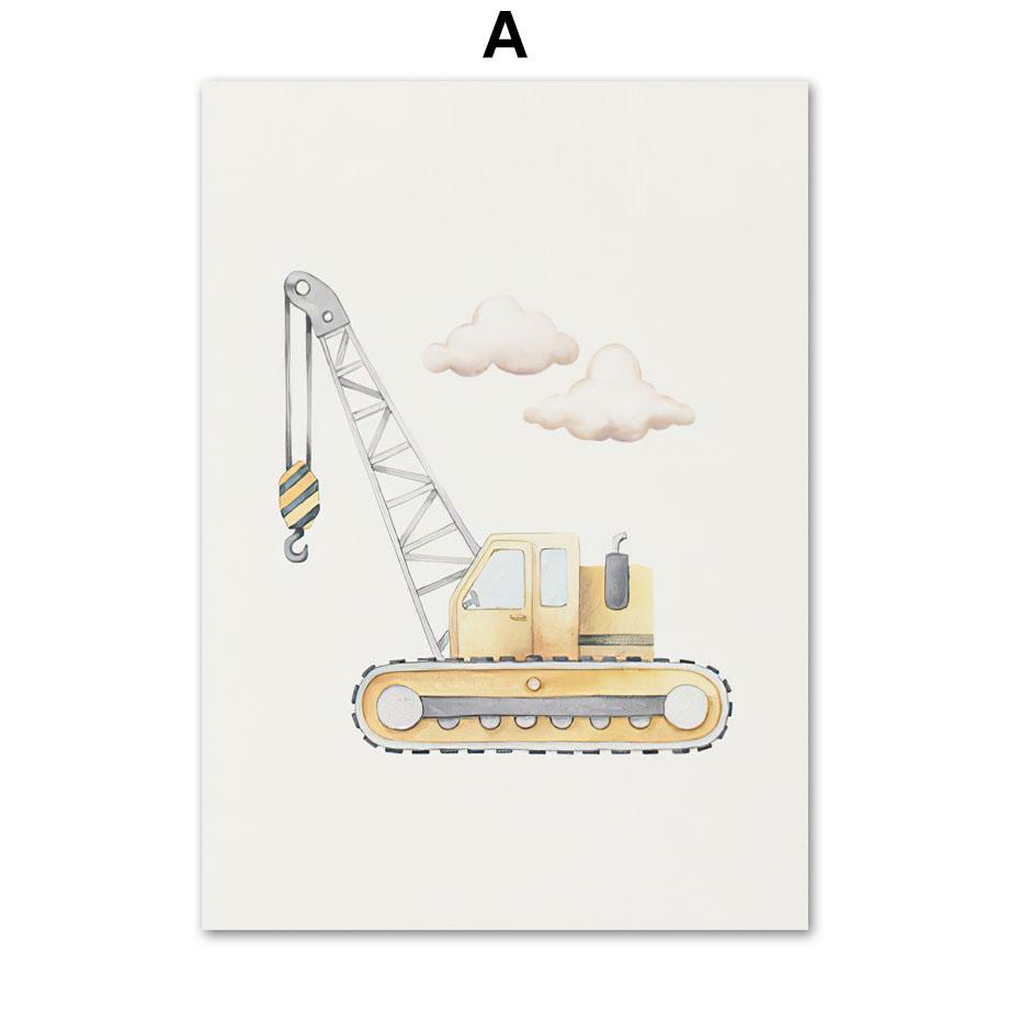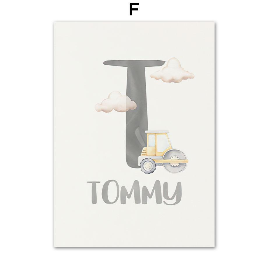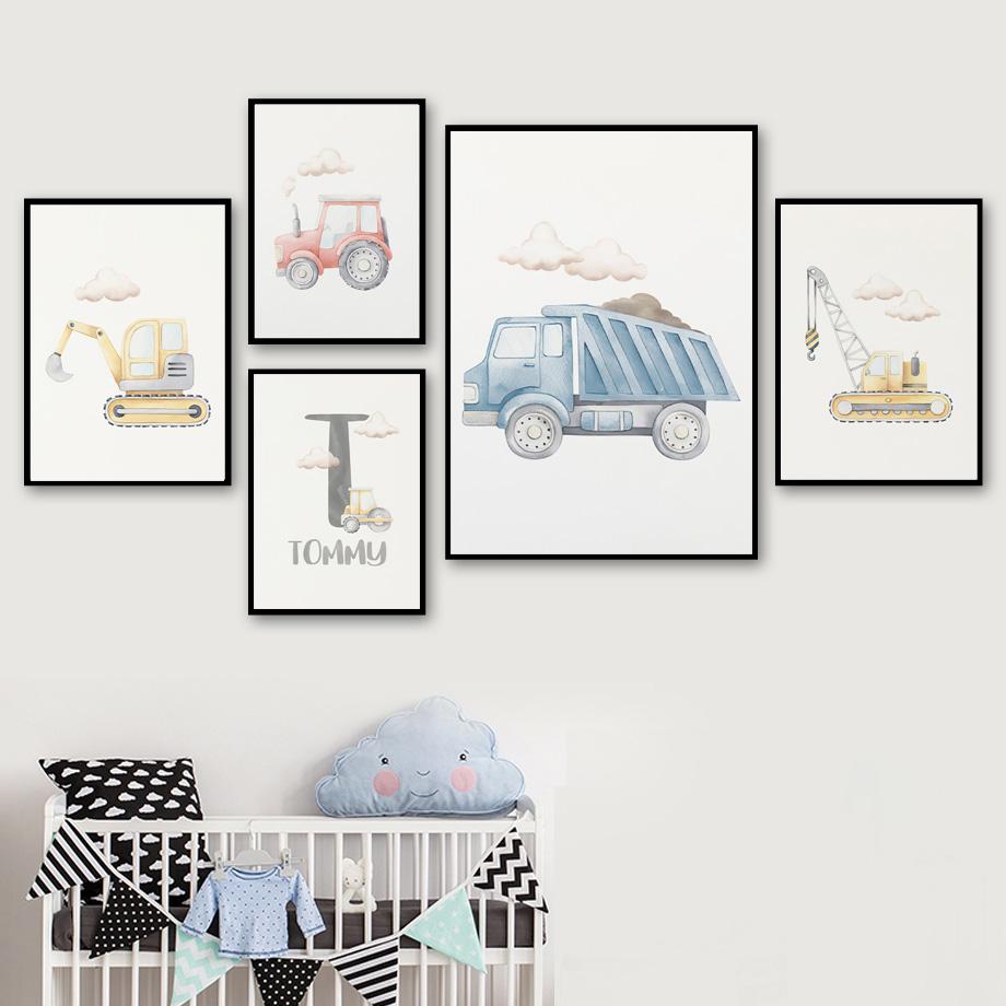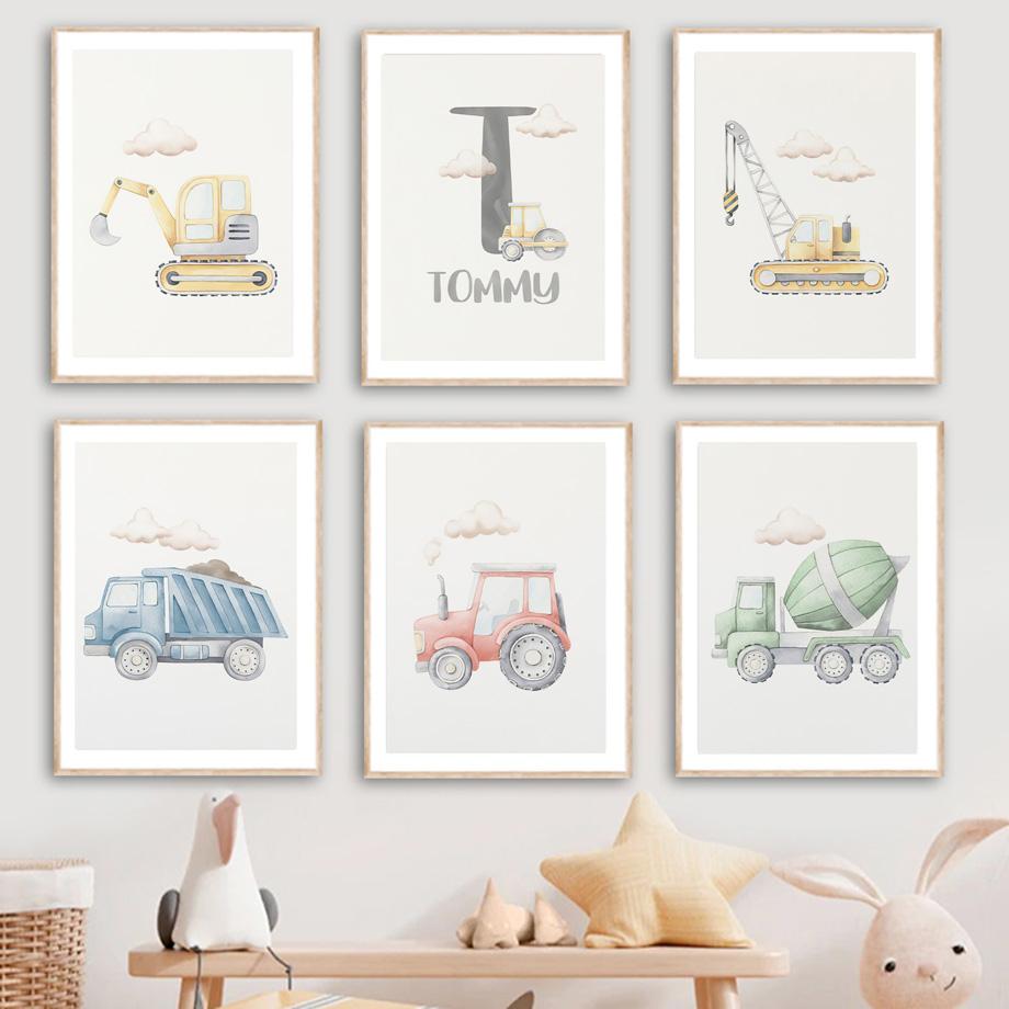 Строительная машина, персонализированное имя ребенка, настенная живопись на холсте, постеры и принты для детской комнаты, настенные панно для декора комнаты для мальчиков