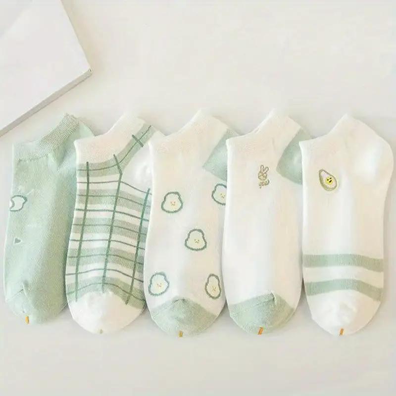 5 пар носков с мультяшным принтом, милые универсальные низкие носки до щиколотки, женские чулки и чулочно-носочные изделия