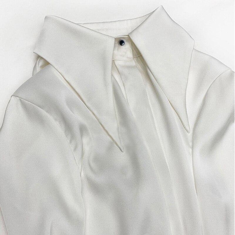 Осенняя винтажная атласная шелковая женская рубашка, элегантная женская блузка с отложным воротником, белые женские рубашки с длинными рукавами, топы, Blusas 16946