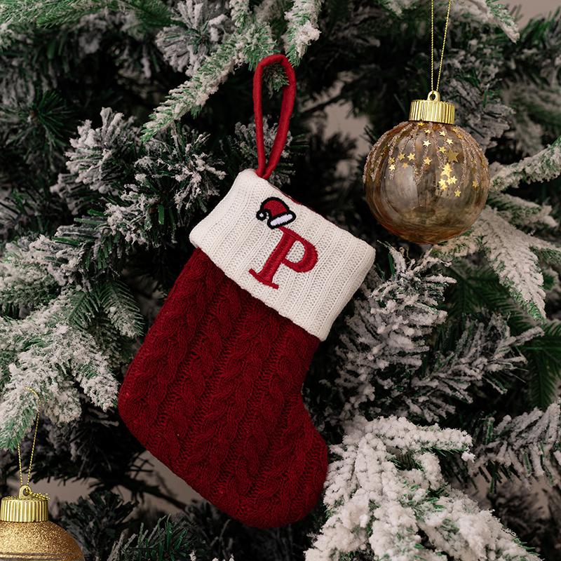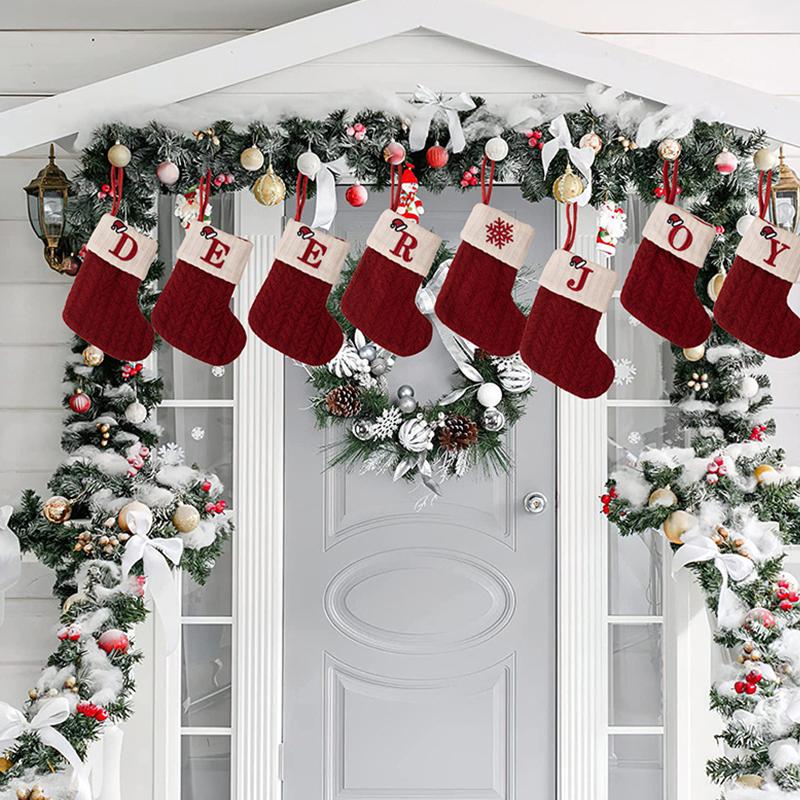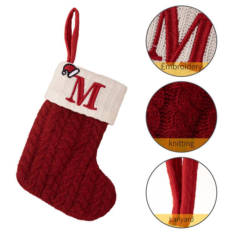 Для дома красные рождественские носки с алфавитом и буквами, рождественские вязаные чулки