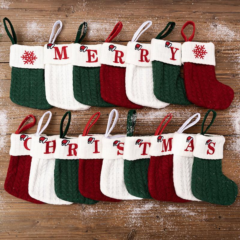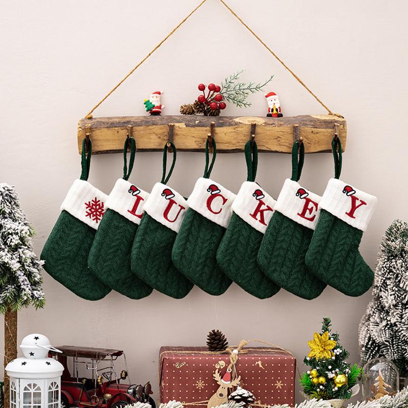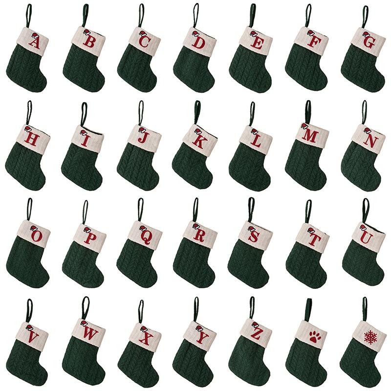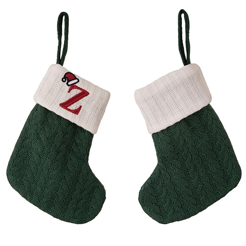 Рождественские Носки с Алфавитом и Зелеными Буквами, Рождественский Вязаный Чулок