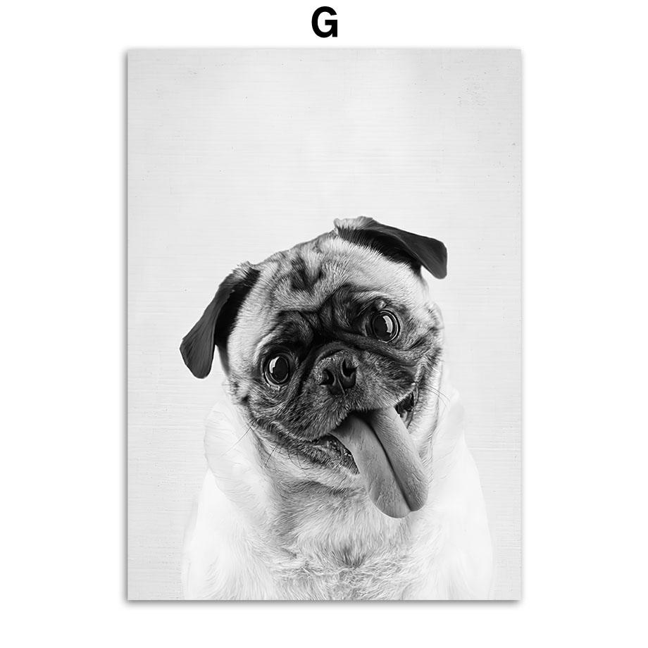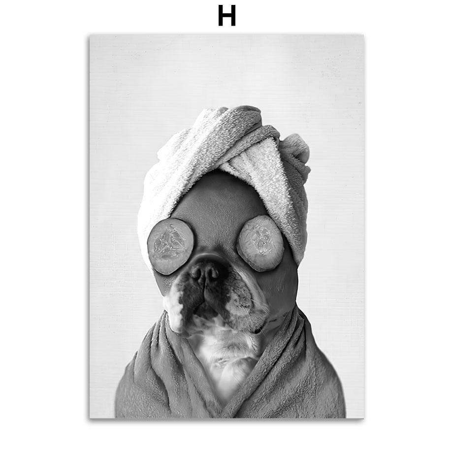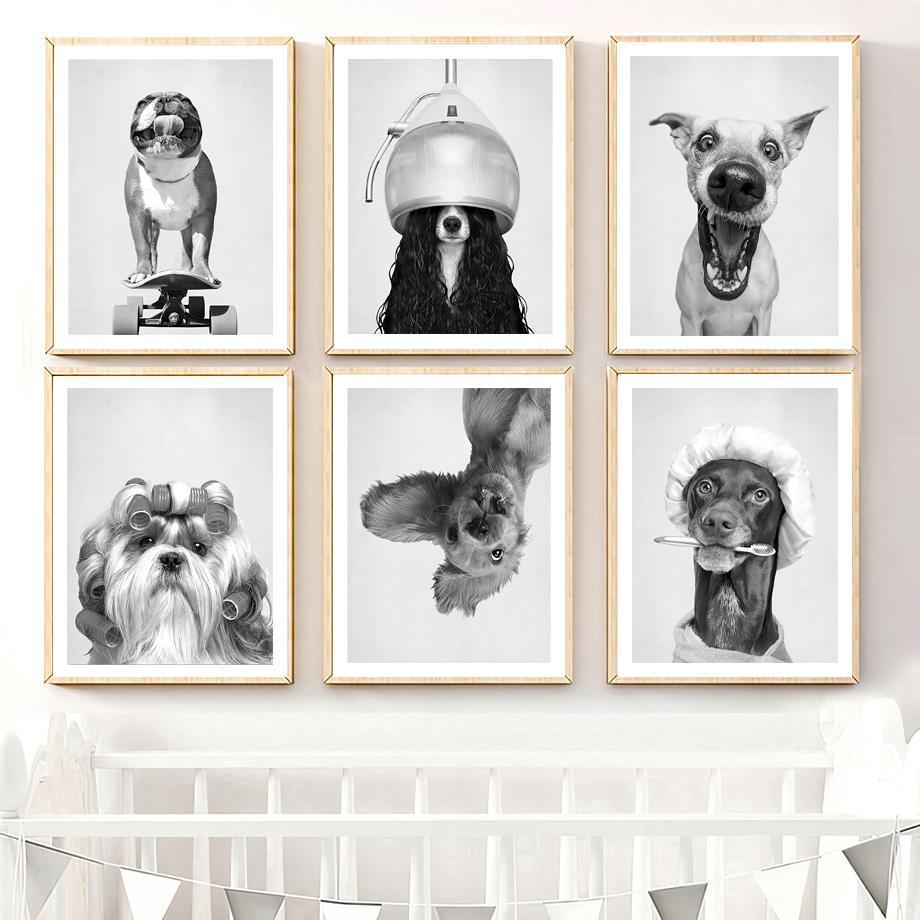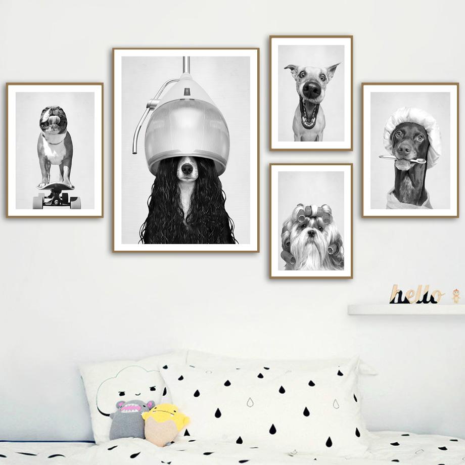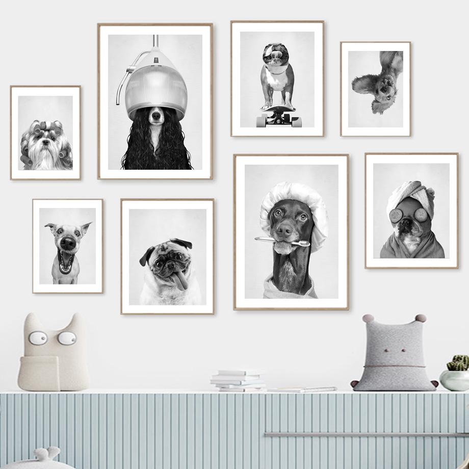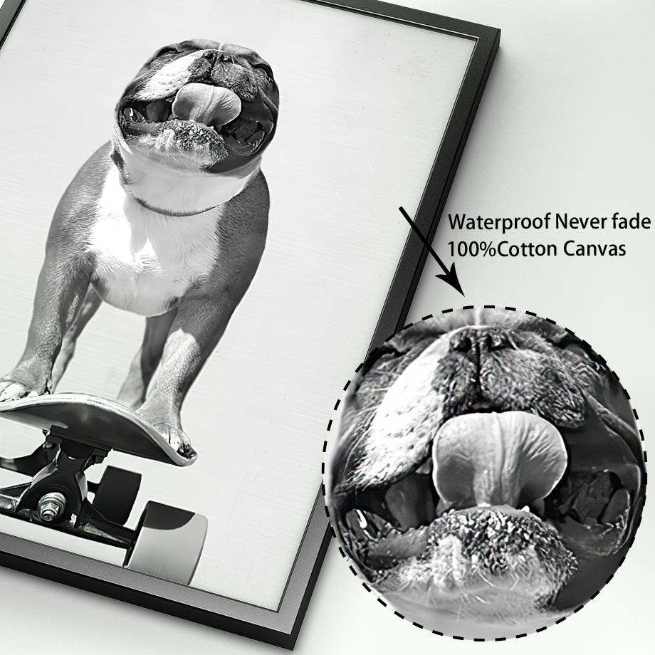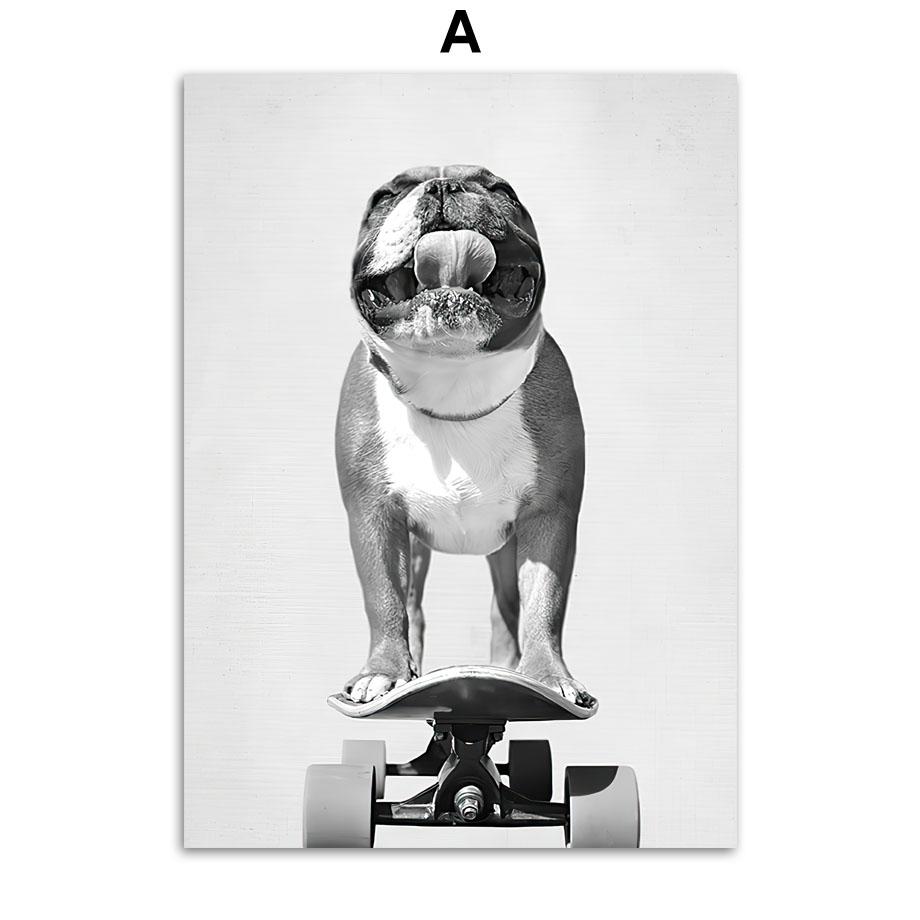 Черно-белая забавная собака, щенок, бульдог, скейтборд, плакат, детская настенная живопись, холст, картина, настенные панно для декора спальни