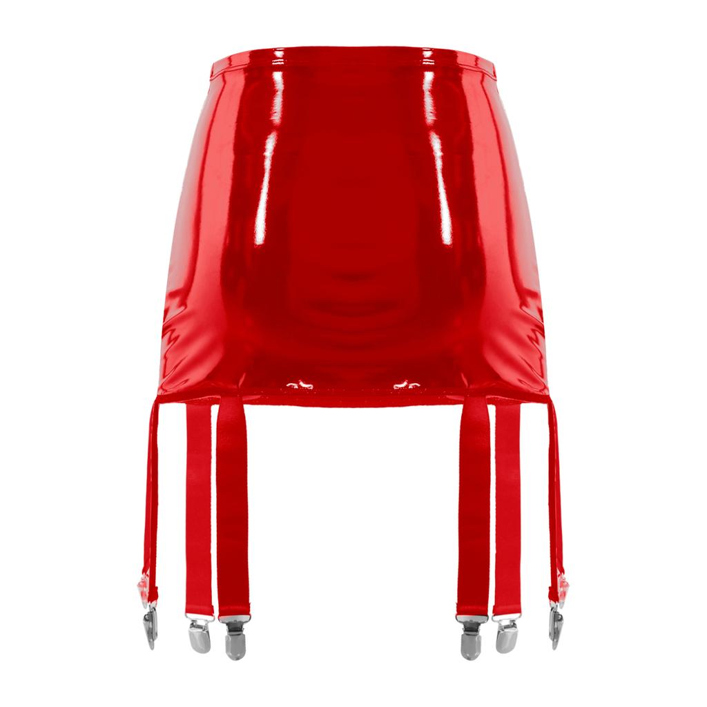 Женская мини-юбка с высокой талией, латексная подвязка с 6 ремнями, металлический зажим, пояс для подтяжек
