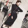 Длинное шерстяное платье длиной до колена для женщин, осенне-зимнее украшение, облегающее ягодицы, вязаное платье с высоким воротником, топы