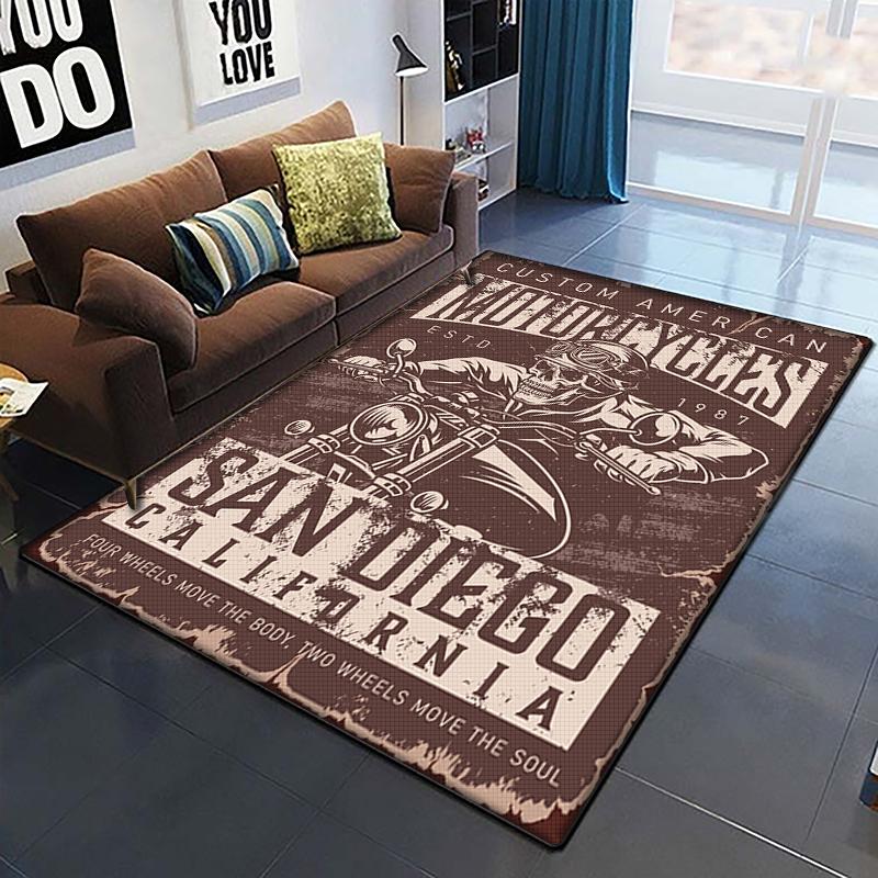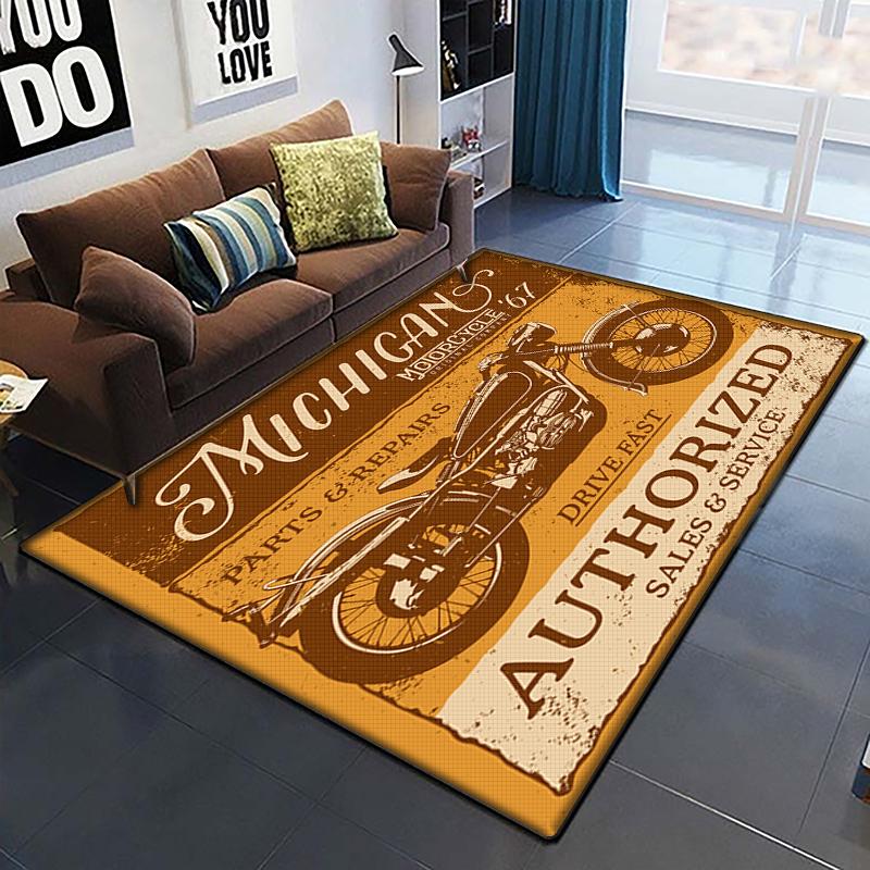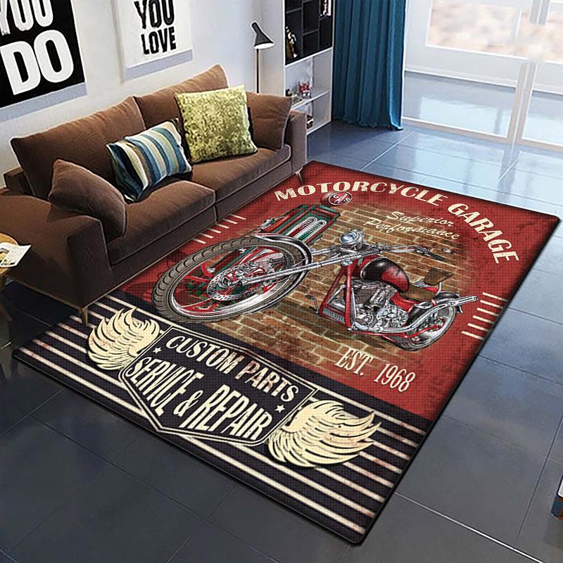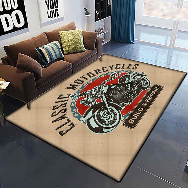 3D ретро мотоциклетный ковер, большой ковер для гостиной, спальни, украшение дивана, коврик для кухни, нескользящий напольный коврик, лагерь для пикника