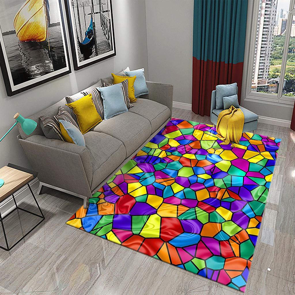 Ковер с радужной геометрией, красочный ковер для взрослых-подростков, современные абстрактные геометрические художественные коврики, декор для спальни, гостиной, напольный коврик
