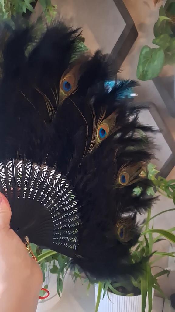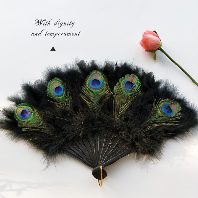 Складной веер из павлиньих перьев, китайский, японский, портативный для свадебных танцев, черный — купить товар онлайн с бесплатной доставкой по всему миру!