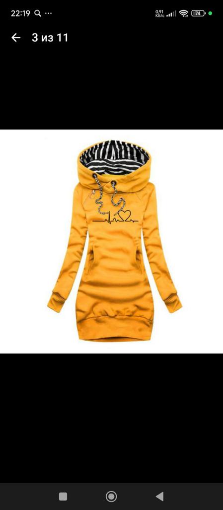 Взяла размер XL подошла туника идеально, после стирки не села, теплая, с карманами и капюшон большой!