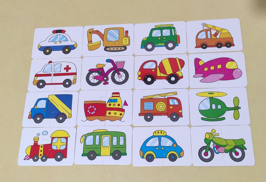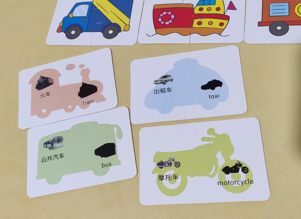Отличные пазлы! Картон прочный, не тонкий. На обратной стороне есть название транспорта на английском.