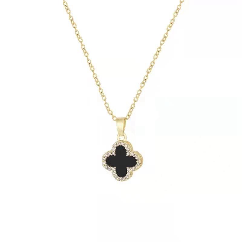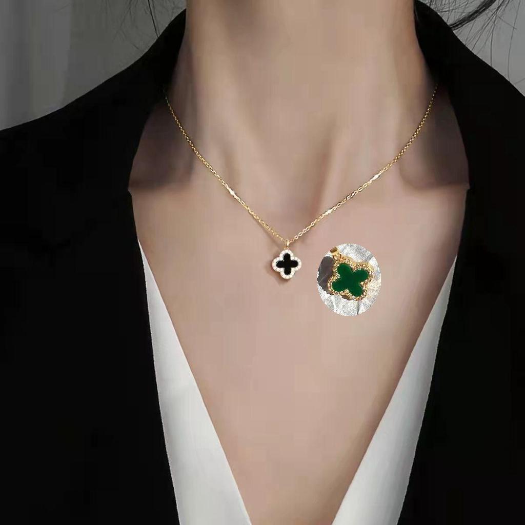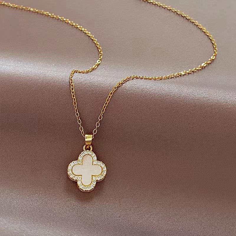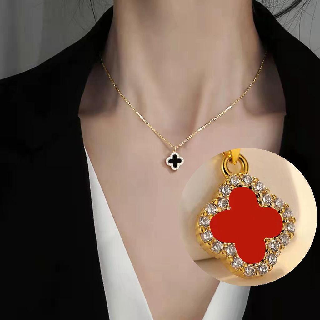 Золотое ожерелье с четырьмя листьями травы и бриллиантами, женственный стиль, модное бесцветное ожерелье, простое и элегантное ожерелье с цветовым сочетанием