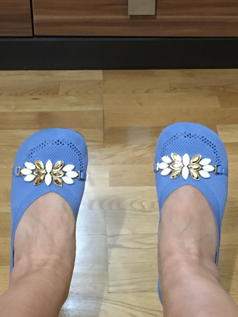 Очень милые и необычные балетки-бобы. Смотрятся очень необычно, такие лапотки. Хоть я и не люблю всякие бляшки в виде цветов на обуви, но форма носка меня покорила. Уж не знаю как будет на узкой ноге, но на мою широкую ногу сели отлично и смотрятся очень хорошо. Жаль, что лето закончилось(... На ногу 25,5см 41 размер подошёл идеально. Качество пошива без нареканий. Очень понравилась стелька из мягкой ткани и внутри по моему поролон. Единственный неприятный момент это сильный запах от подошвы, вся сборная посылка провоняла. Но несколько дней на балконе решили эту проблему. Так что смело могу рекомендовать этот товар к покупке